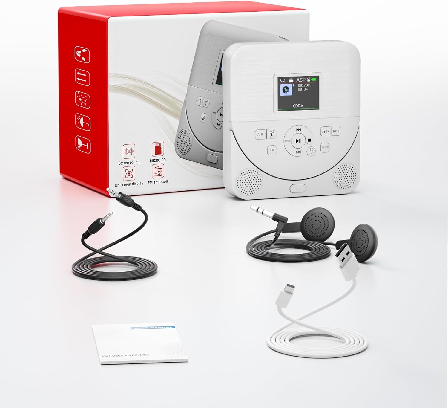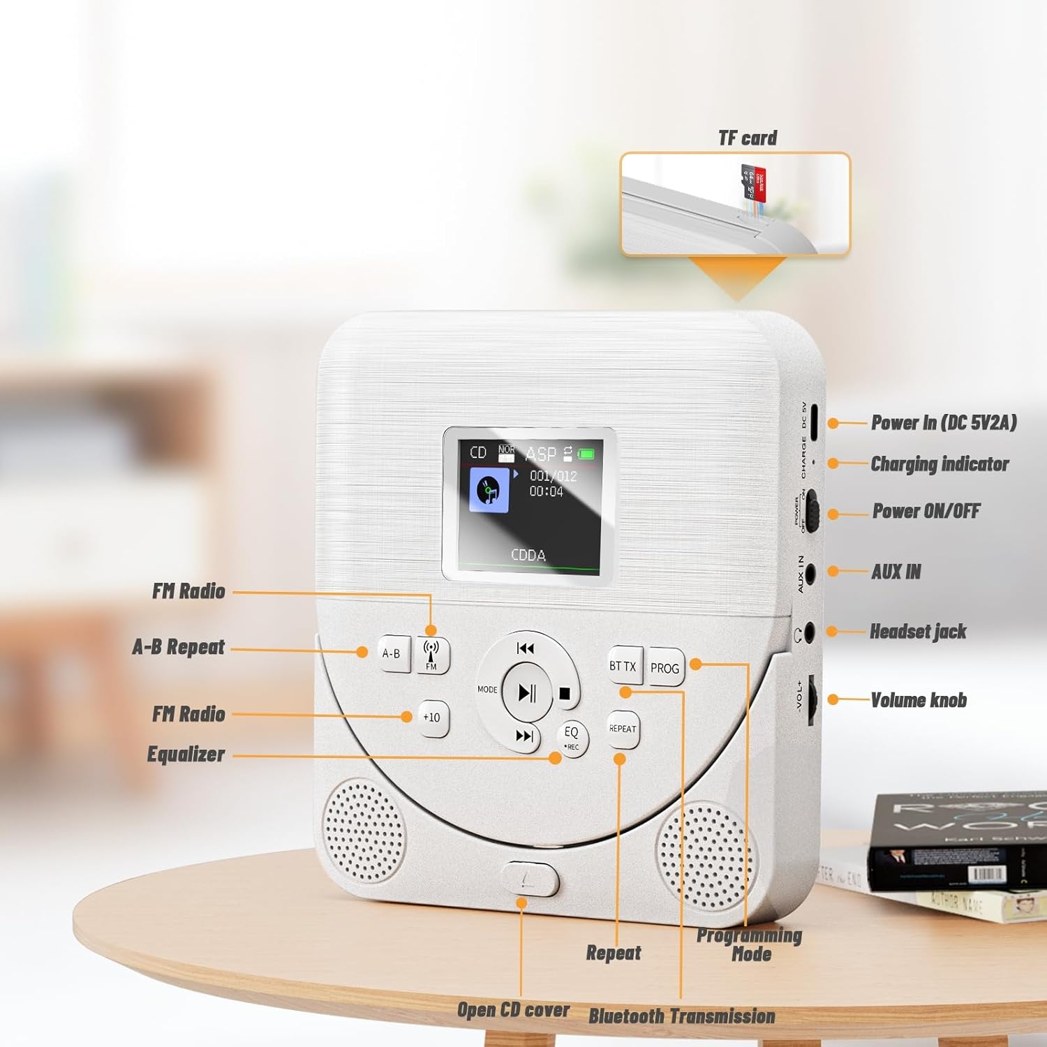 - 【CD Player Bluetooth】Der Player ist mit einem Bluetooth-Sender und einem Bluetooth-Empfänger ausgestattet. Bluetooth-Sender: Drücken Sie lange auf die Taste BT TX. Sie können einen Bluetooth-Lautsprecher oder ein Bluetooth-Headset anschliessen.