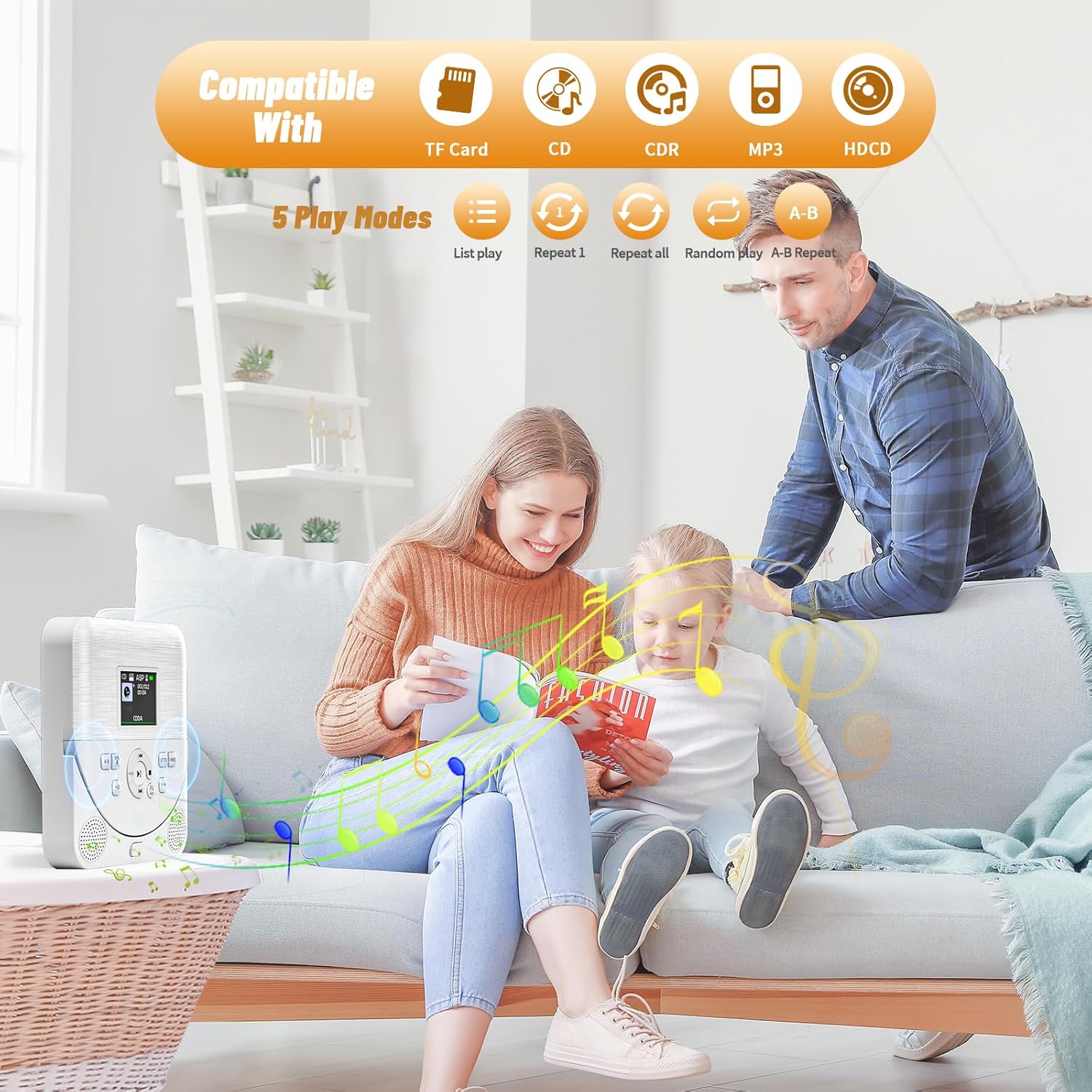 - 【Multi-Funktional】CD player tragbar bluetooth Unterstützt 4 CD-Formate: CD, CDR, MP3, HDCD. Unterstützt 8 Wiedergabemodi: Listenwiedergabe, Repeat 1, Repeat all, Zufallswiedergabe, A-B Repeat, Speicher spielen, +10 Wiedergabe überspringen,