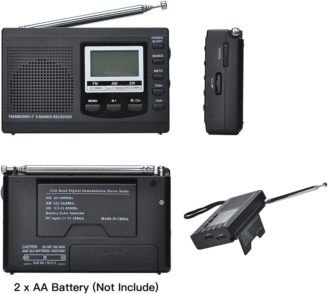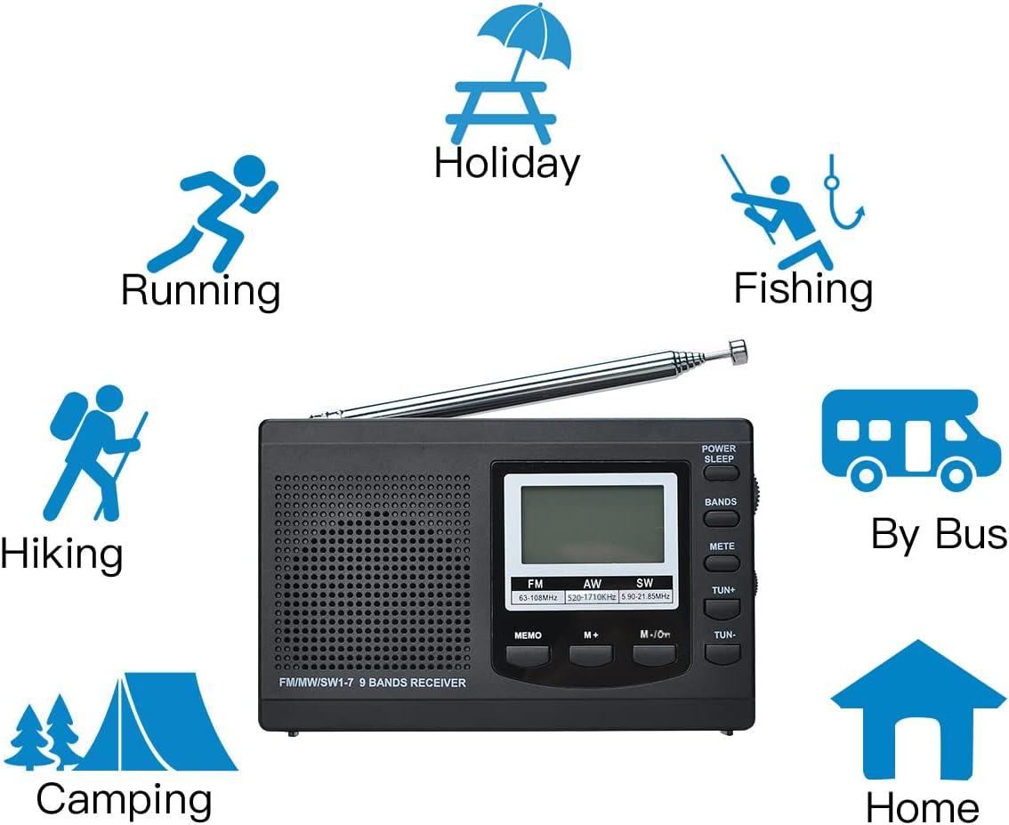 - 【AM FM SHORTWAVE RADIO】: Mit AM-, FM- und SW1-7-Bändern. FM (63-108 MHz); AM (520 / 522-1710 kHz); SW 1-7 (5.90-21.95MHz), total 9 Bänder, die Stereoradio abstimmen. Sie können mehr Radiosender empfangen, um Ihre Ruhezeit zu geniessen.