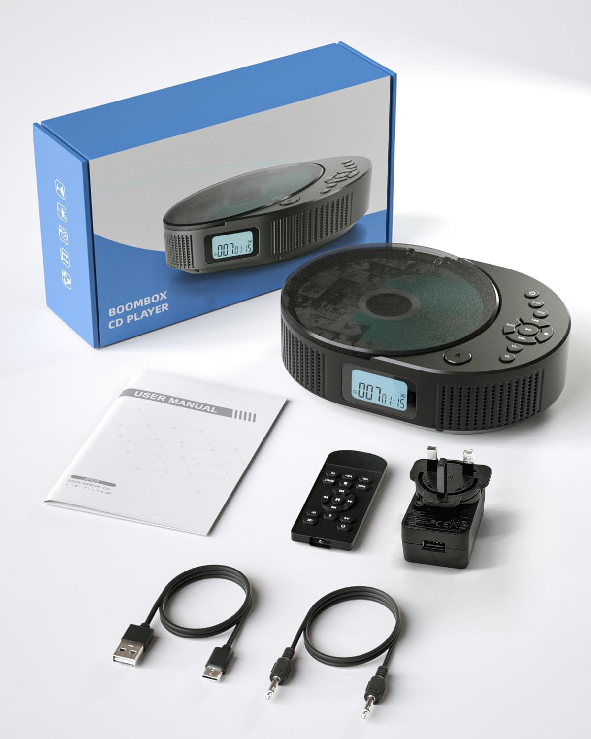 - đžă2-in-1-CD-Player und Bluetooth-Lautsprecheră Im Gegensatz zu anderen normalen CD-Playern ist dies nicht nur ein tragbarer CD-Player, sondern auch ein tragbarer Bluetooth-Lautsprecher. Unser Boombox-CD-Player ist mit zwei