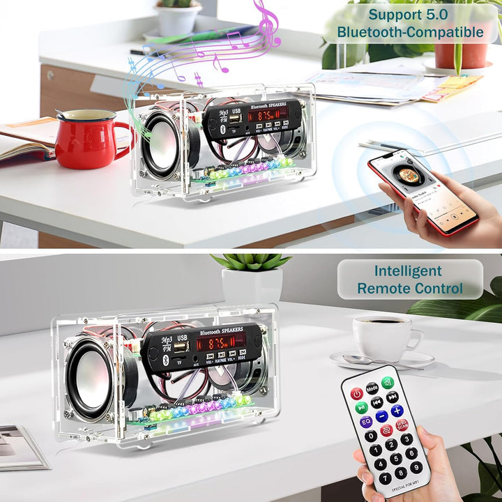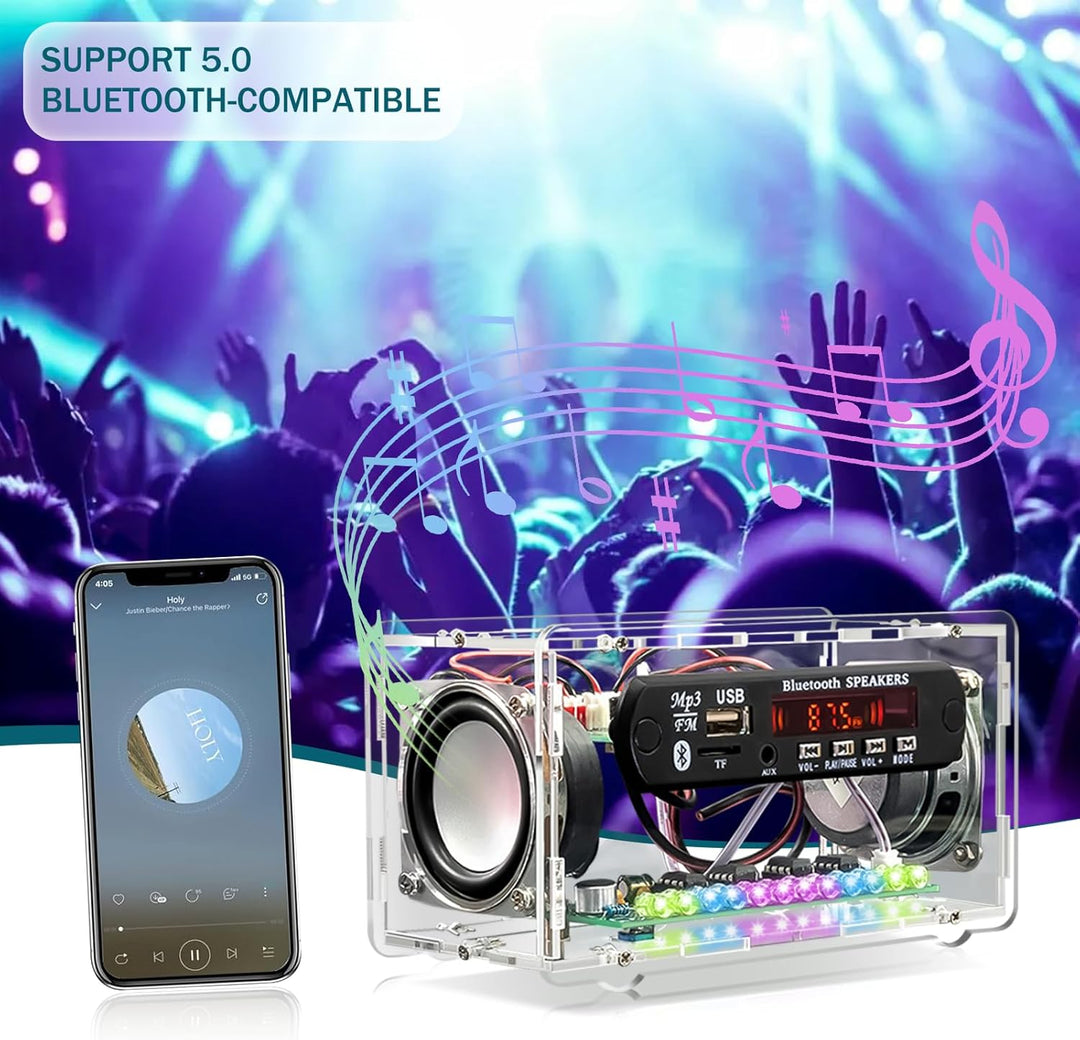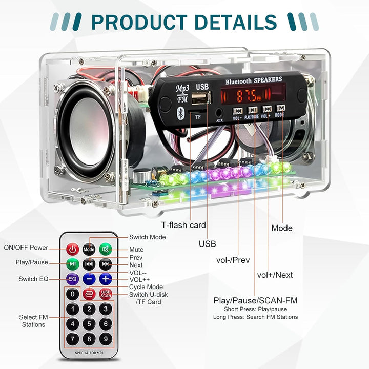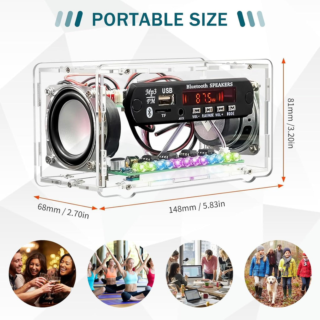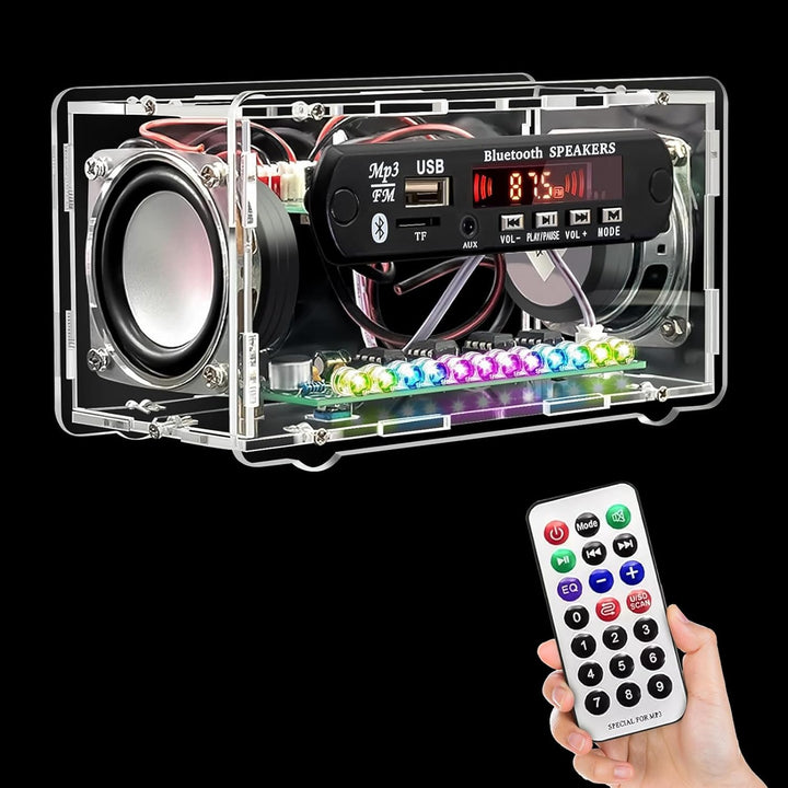 - Praktischer Bausatz: DIY Bluetooth-Lautsprecher Kit mit transparenter Acryl-Schale, nach der Installation ist er ein schöner Bluetooth-Lautsprecher. Das digitale Display zeigt den aktuellen Wiedergabemodus, die Lautstärke und die Radiofrequenz an. Zur