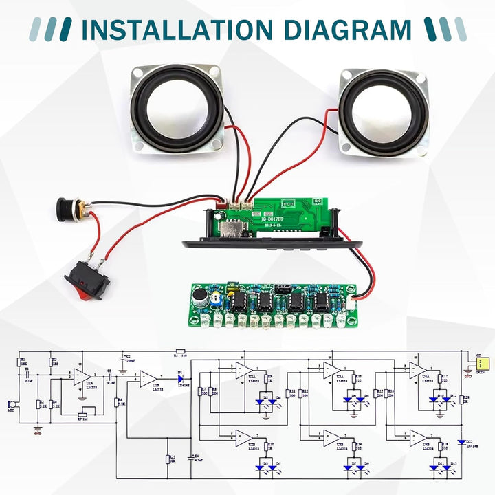 - Einfache Installation: Die Bluetooth-Lautsprechermodulplatine ist gelötet und Sie müssen nur das LED-Blinklicht-Kit anlöten, die Drähte anschliessen und die transparente Acrylschale zusammenbauen. Bitte stellen Sie beim Löten sicher, dass alle