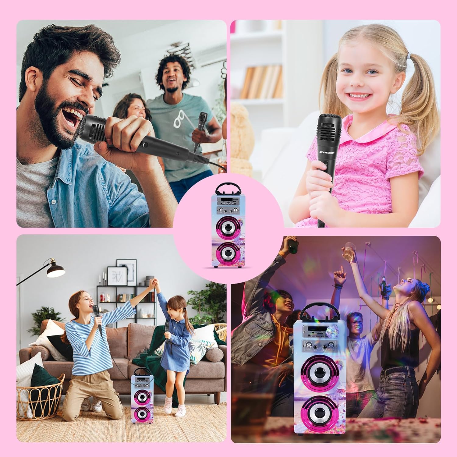 - Karaoke-Lautsprecher. Ideal als Spielzeug für Mädchen und Jungen im Alter von 5-13 Jahren. Bluetooth-Lautsprecher mit Mikrofon für Karaoke. Sie können es als Spielzeug für Mädchen und Jugendliche verwenden. Dank des lustigen Karaoke-Modus und des