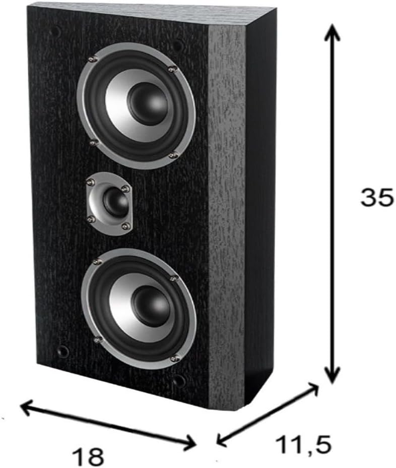 - Höhe x Breite x Tiefe: 35,0 x 18,0 x 11,5 cm. (Trapezoid). Gewicht je 3,1 kg. Mattschwarzes Finish.