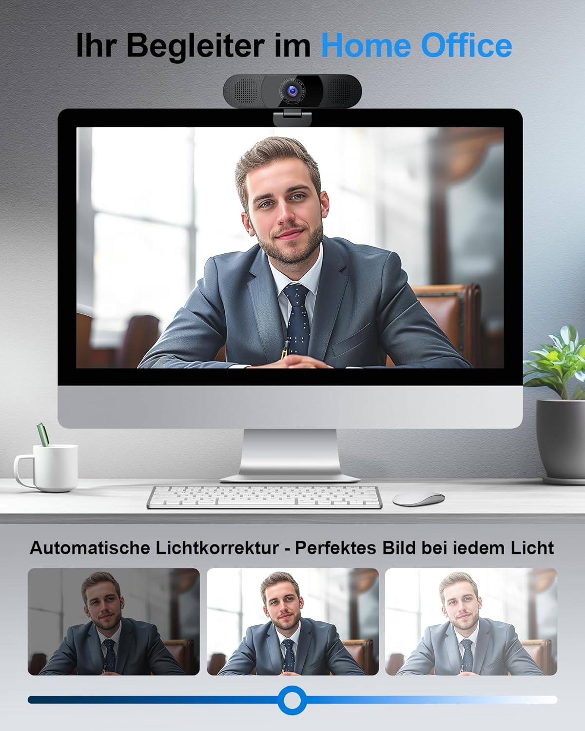 - 【1080P Bild & Automatische Lichtkorrektur 】Die Full HD Webcam ist mit einer 1080P HD Kamera ausgestattet. Die fliessende Frequenz von 30fps macht Ihr Videobild beeindruckend und klar. Die 1080P Webcam kann in einer Vielzahl von Umgebungen verwendet