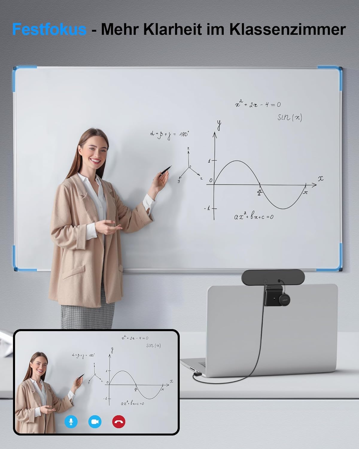 - 【90 °Objektiv und Festfokus】Die Webcam ist mit einem 90 °Objektiv ausgestattet. Das 90 °Objektiv hat einen grösseren Winkel, bietet Platz für mehr Personen und bietet ein breiteres Sichtfeld für Ihr Video. Eine feste Brennweite kann den Fokus