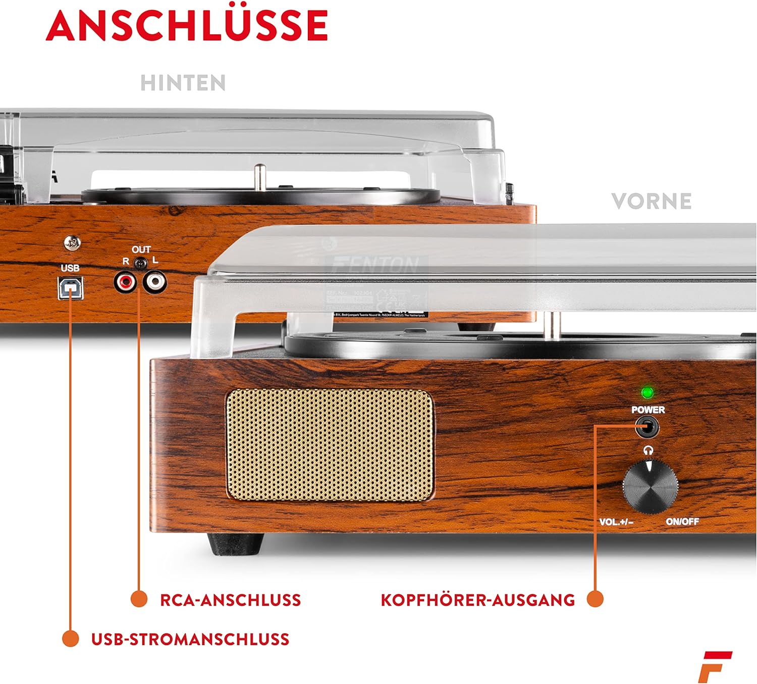 - Der Fenton RP106W ist ein gutes Beispiel für Plug-and-Play. Nach Erhalt des Geräts stecken Sie es in die Steckdose, legen eine Schallplatte auf können sofort Retro Schallplattensound geniessen.
