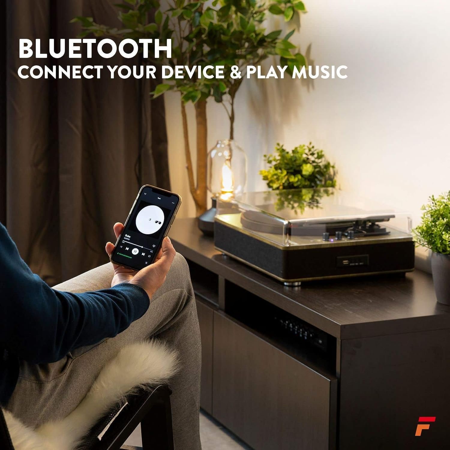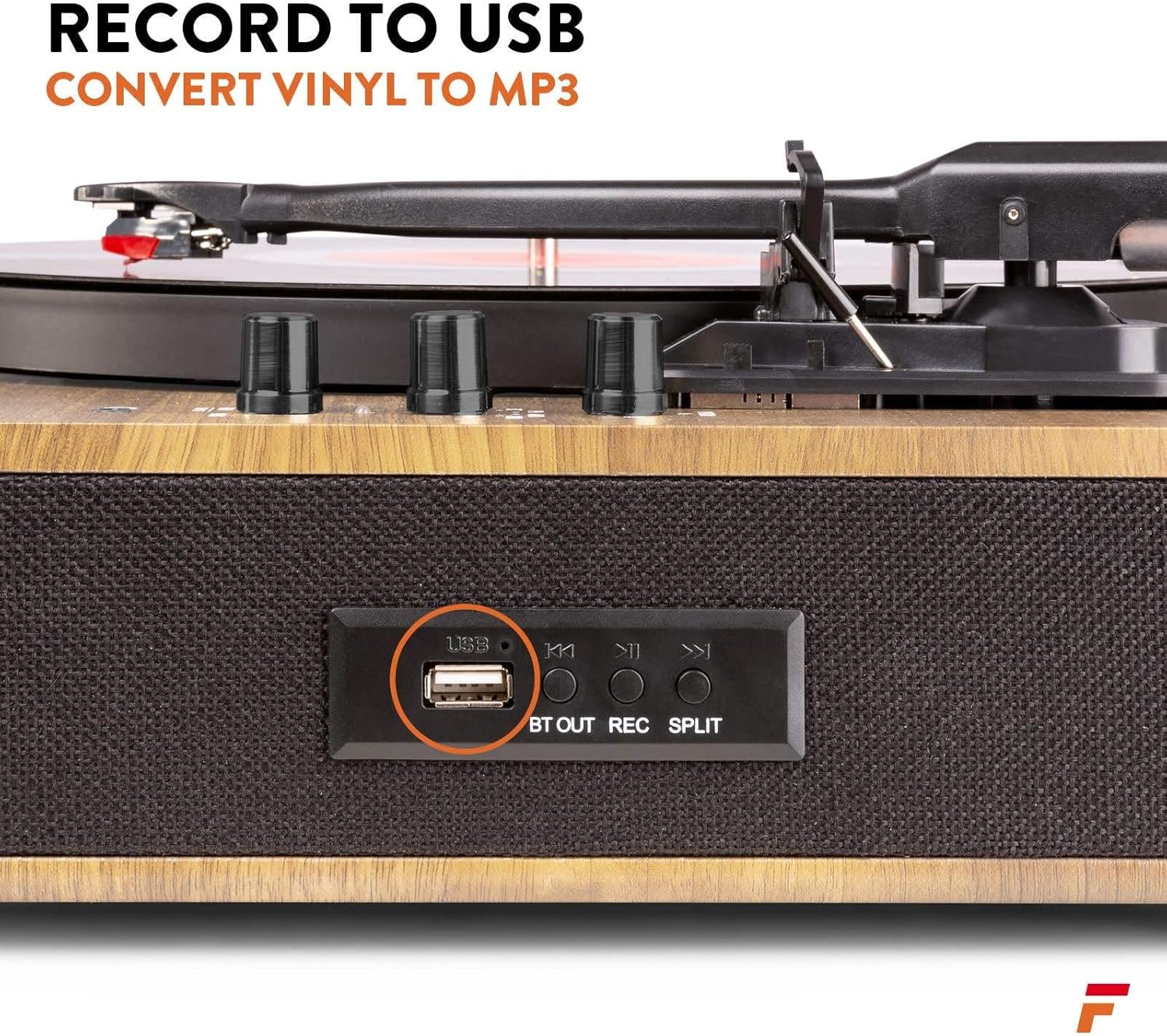 - USB Plattenspieler mit Bluetooth: Dank Bluetooth Ausgang können Sie Ihre Schallplatten auf ihre Kopfhörer übertragen, oder streamen Sie Ihre MP3-Musik von Ihrem Handy auf den Plattenspieler mit Boxen