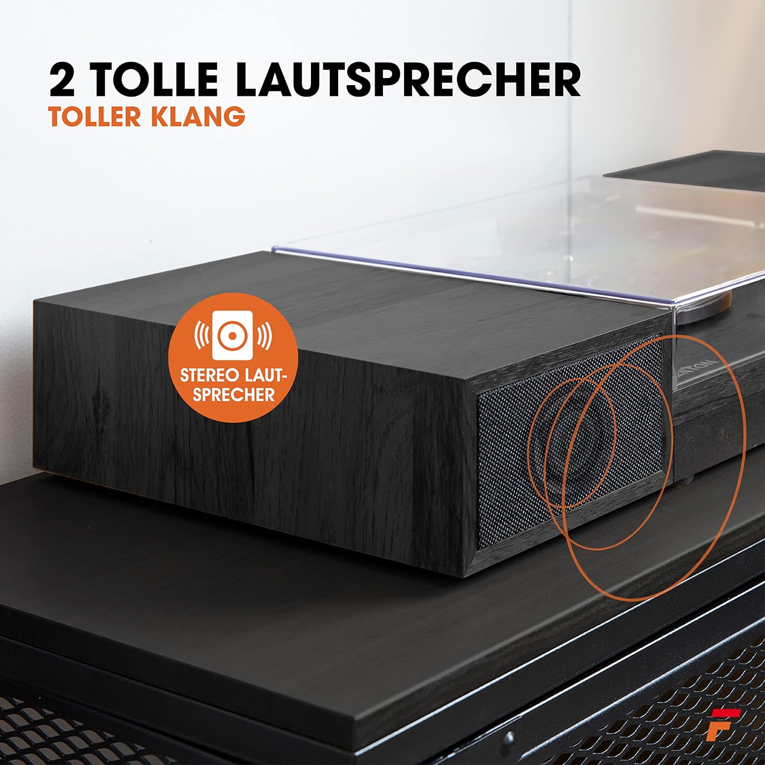 - Dank eingebauter Verstärker spielt der Fenton RP165D Vynil Plattenspieler den Sound über die mitgelieferte externe Stereo Lautsprecher ab. Geniessen Sie einen tollen typischen Retrosound
