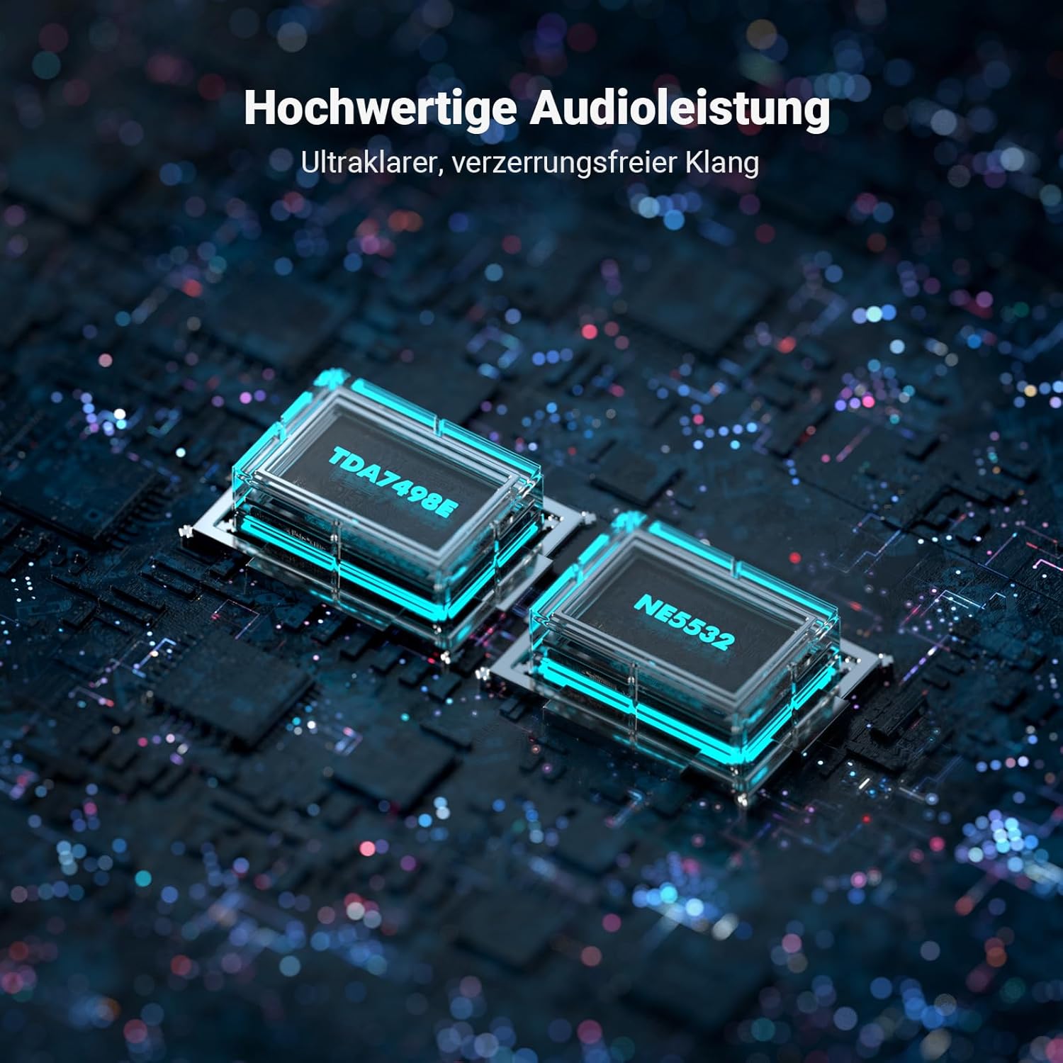 - Verwendet Texas Instruments TDA7498E Chip, NE5532 Operationsverstärker. Kein Knacken, keine hörbaren Geräusche, totenstill, wenn nichts durch ihn gespielt wird.
