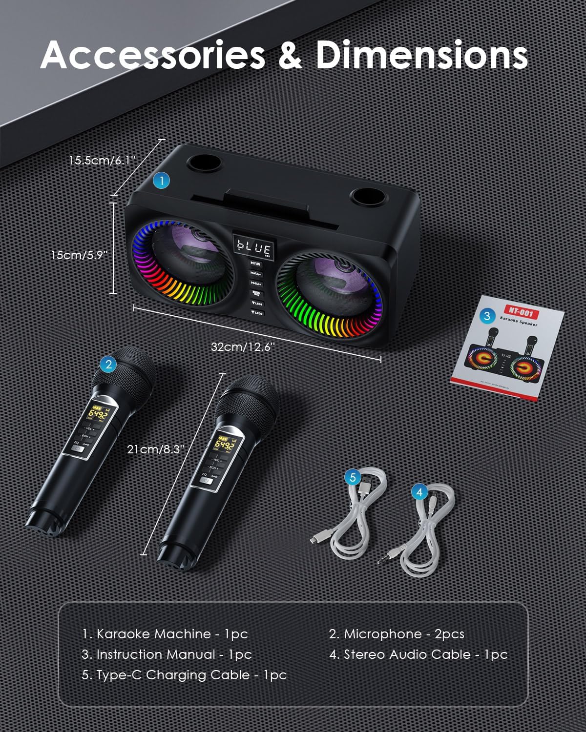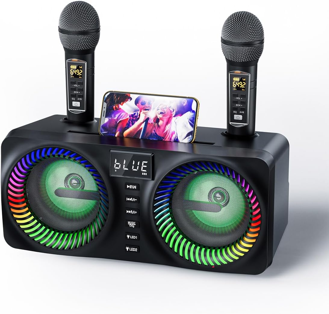 - 【All-in-One-Karaoke】Die All-in-One-Karaokemaschine von GJCrafts verfügt über einen Handyhalter und 2 Mikrofon-Speicherplätze, die auch als Ladedocks dienen – eine Alternative zum USB-Laden.