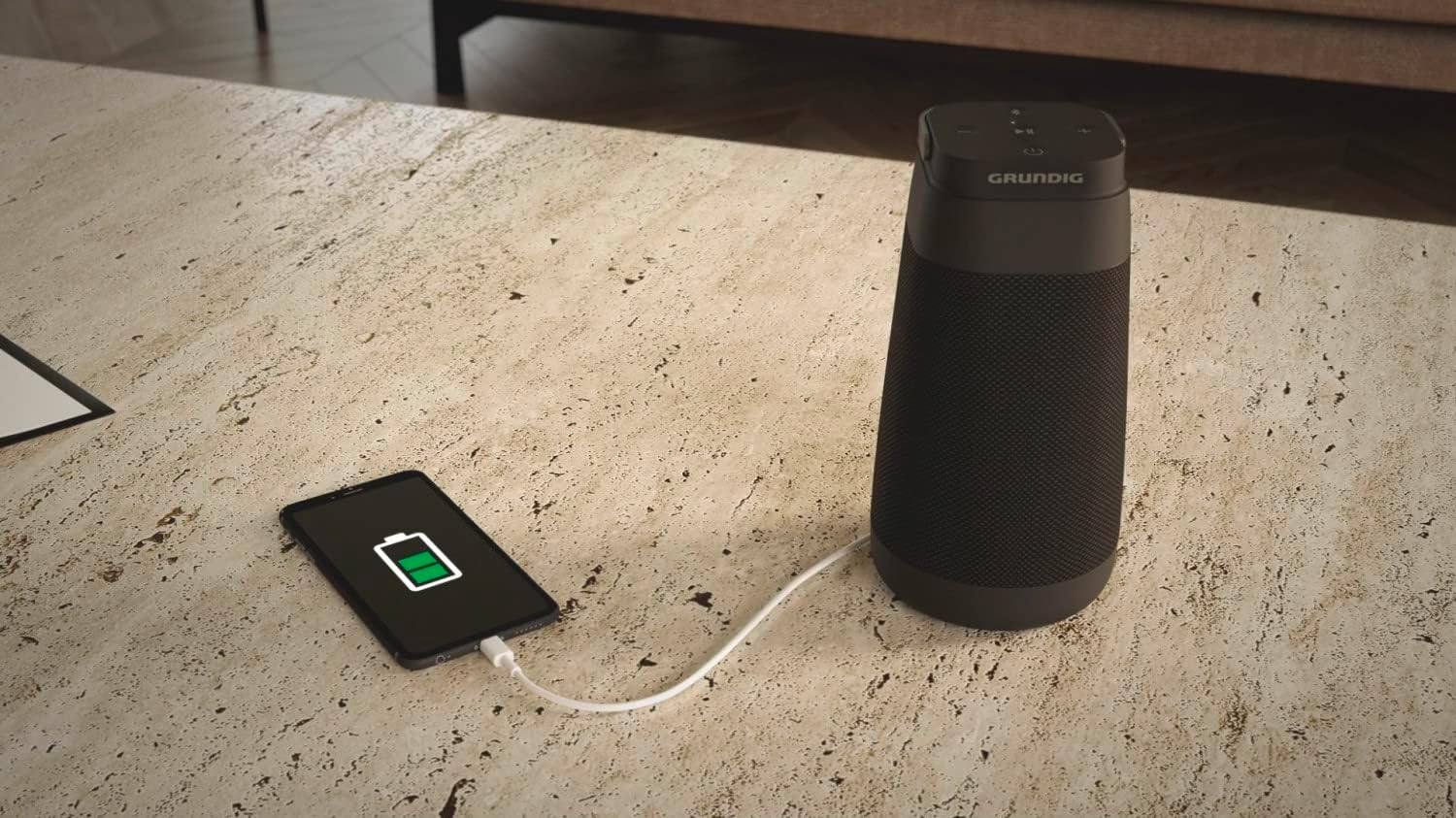 - Der kompakte Lautsprecher kann über die Grundig AudioHub App mit bis zu 20 weiteren GBT Connect Lautsprechern zu einem Wiedergabeverbund kombiniert werden.
