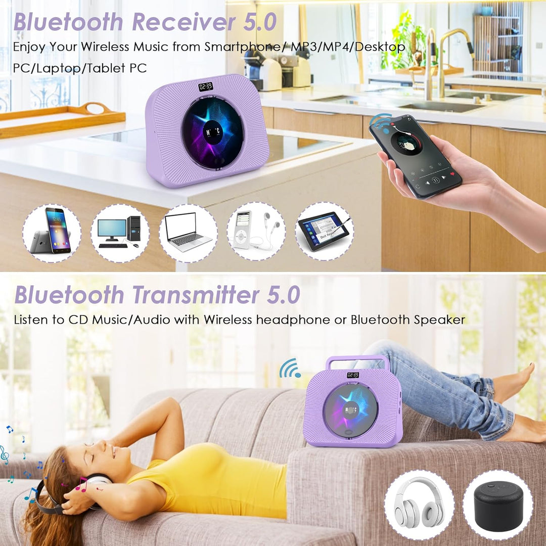 - Dual Bluetooth Modus: Dieser CD Player verfügt über integriertes Bluetooth für eine grössere Signalreichweite, schnellere Verbindung und Übertragung, unterstützt Bluetooth-Sender und Bluetooth-Empfänger, Sie können CD-Musik mit