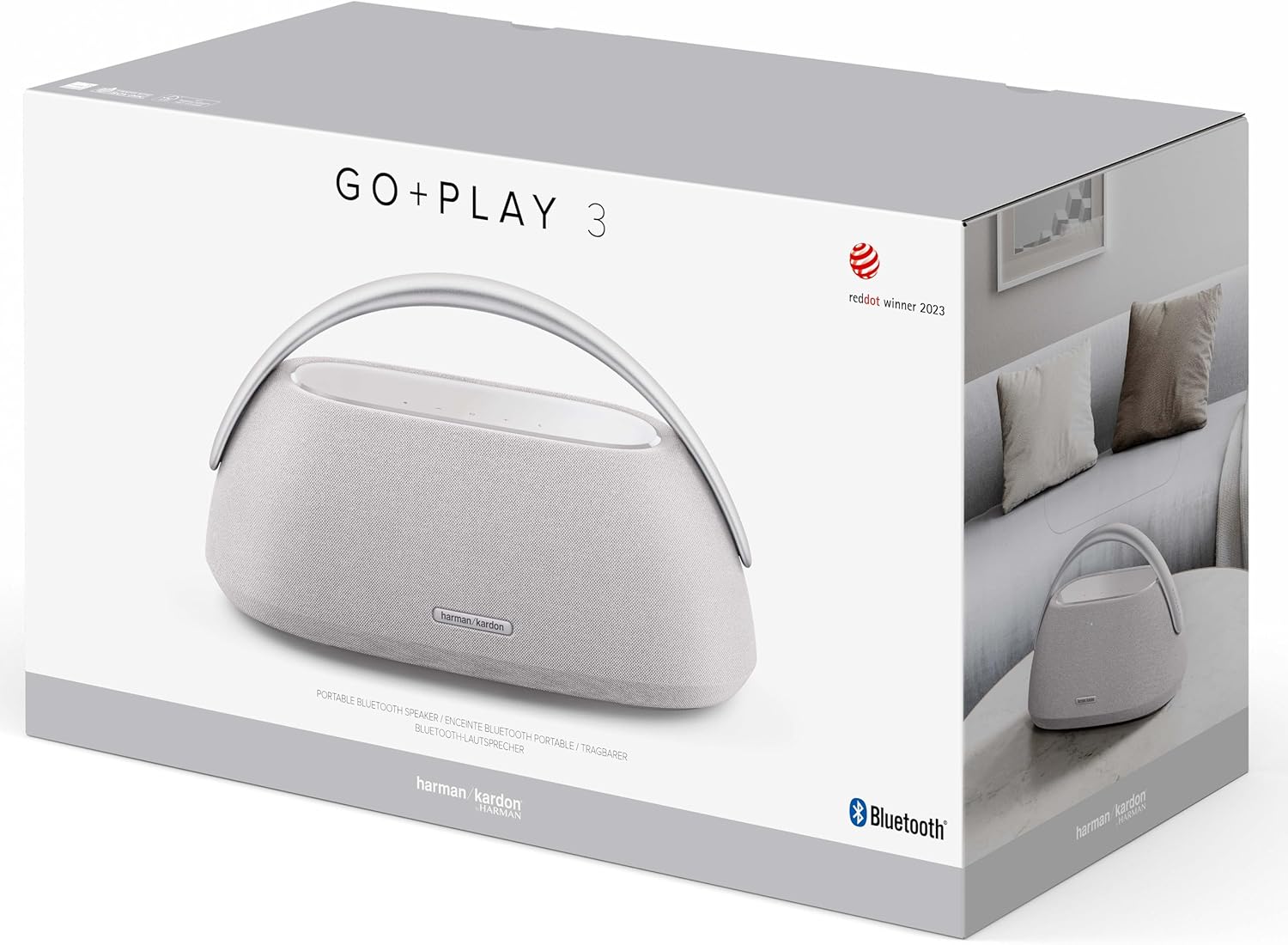 - Lieferumfang: 1 x Harman Kardon Go + Play 3 tragbarer Bluetooth-Lautsprecher in Grau / Soundbox inkl. Netzkabel, Schnellstartanleitung, Sicherheitsanweisungen