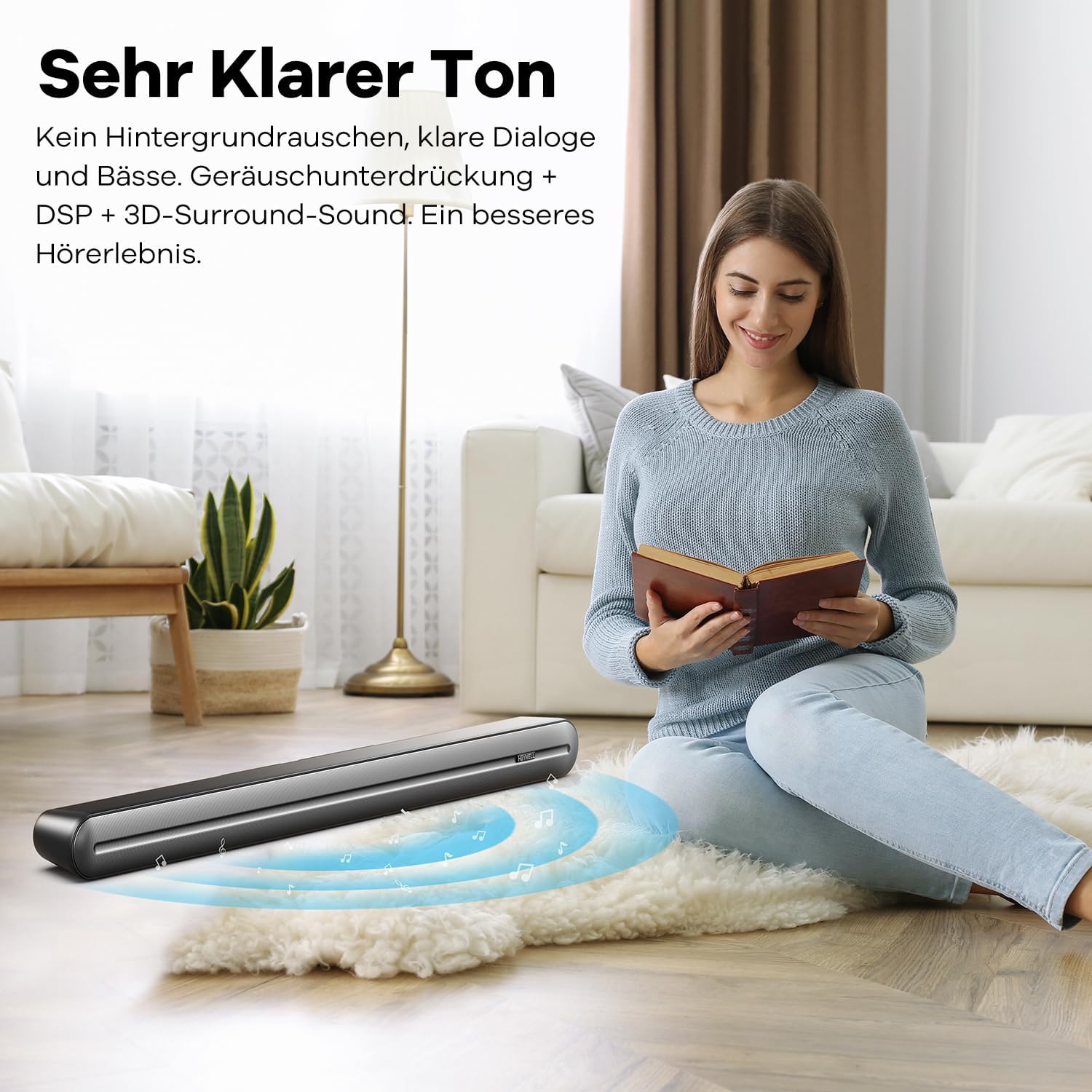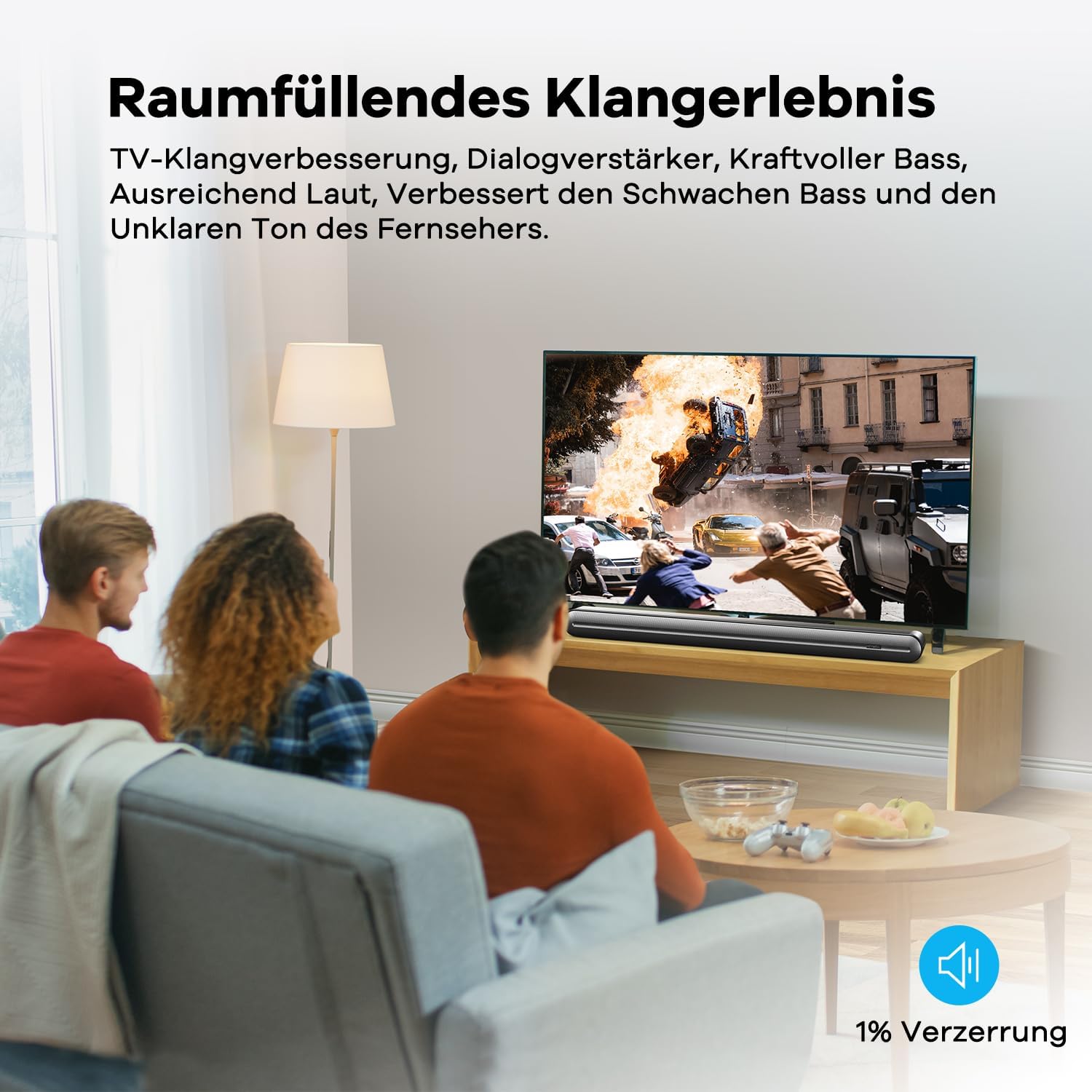 - Gute Hardware:6x Lautsprecher. 2x Digitalverstärker, Spitzenleistung 150W, RMS-Leistung 75W. 6x Lautsprecher soundbar integrierter subwoofer. 3D-Surround-Sound-System, Hintergrundgeräuschunterdrückung, ≤1% Verzerrung, Dialogverbesserung. Besserer