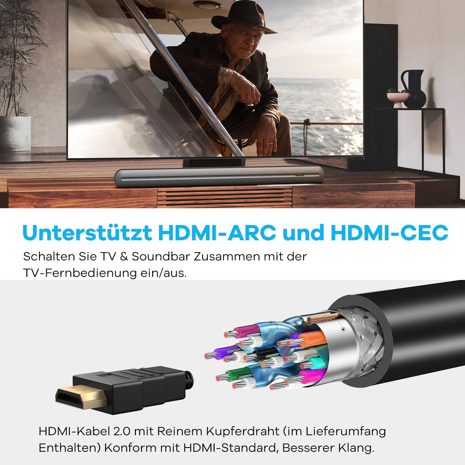 - Mehrere Zubehörteile im Lieferumfang Enthalten: 1,5 Meter HDMI-Kabel, 1,5 Meter optisches Kabel, 1,5 Meter 3,5-mm-Stereo-Klinkenkabel, Fernbedienung (2 AAA-Batterien nicht im Lieferumfang enthalten), Soundbar Wandmontage Kits.