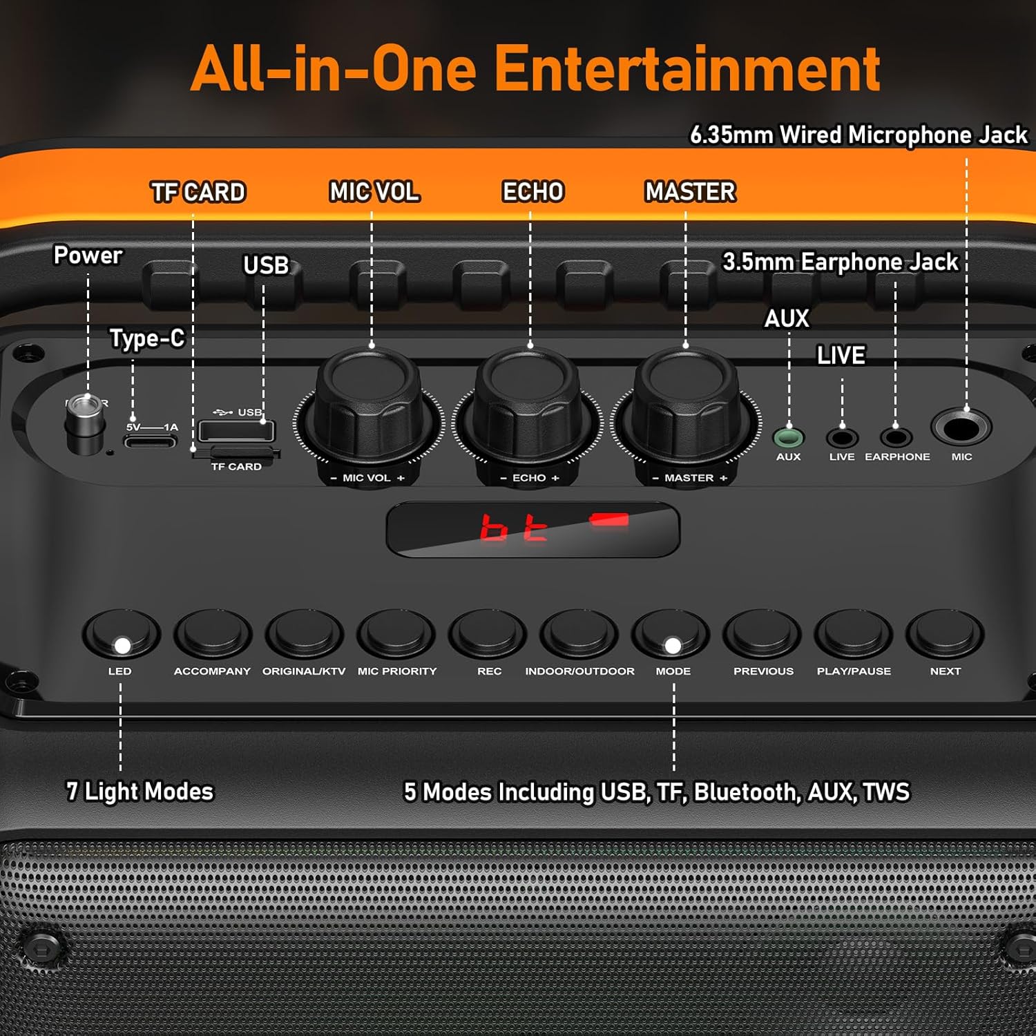 - 【Beste TWS】Unser komplettes professionelles Karaoke ist mit der TWS-Funktion ausgestattet, um zwei identische Einheiten zu verbinden, sodass Sie ein immersives und immersives Klangerlebnis geniessen können.