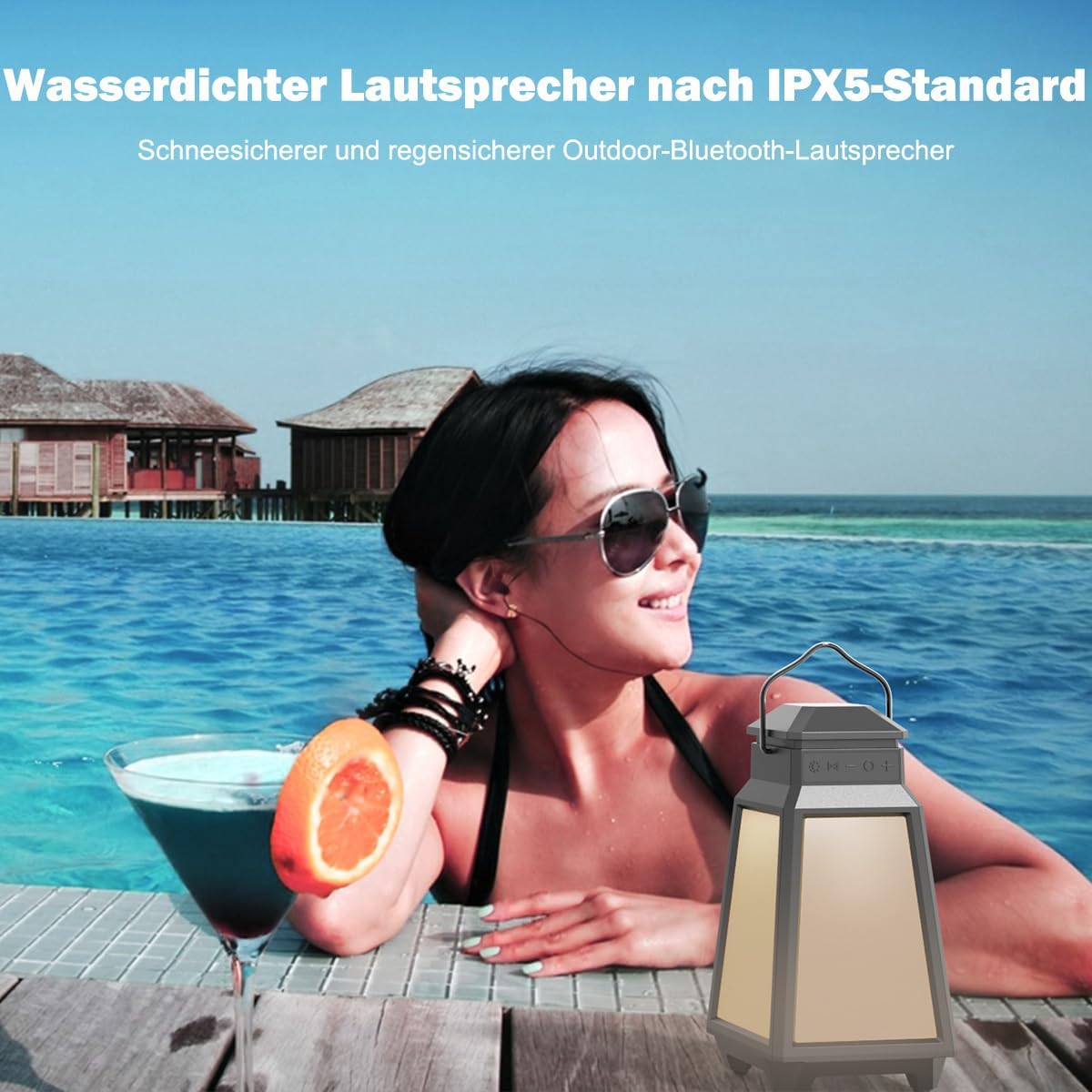 - IPX5 WASSERDICHTE UND VOLLE WITTERUNGSBESTÄNDIGKEIT: Der Lautsprecher hat den IPX5-Wassertest bestanden und ist ein echter Allwetter-Aussenlautsprecher, spritzwassergeschützt und regenfest. Wir empfehlen jedoch, dass Sie den Lautsprecher bei längerer