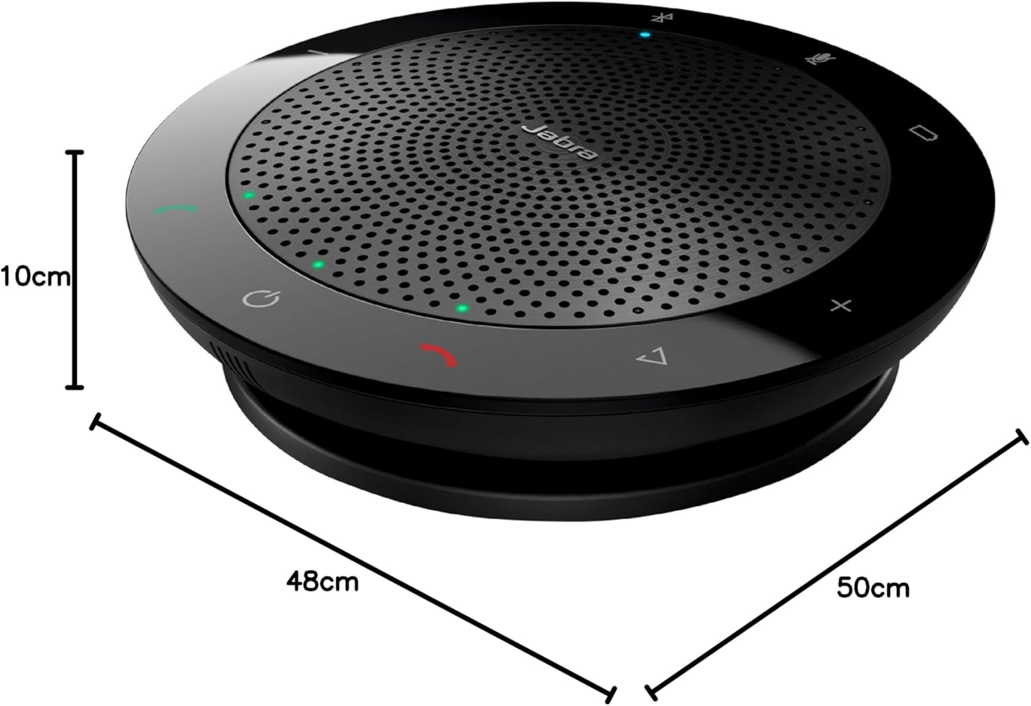 - Lieferumfang: Jabra Speak 510+, Jabra Link 380 Bluetooth USB Adapter, inkl. Lithium Batterien, Tasche, Quick Start Guide Broschüre - Durchmesser: 120 mm, Höhe: 33 mm - Farbe: Schwarz