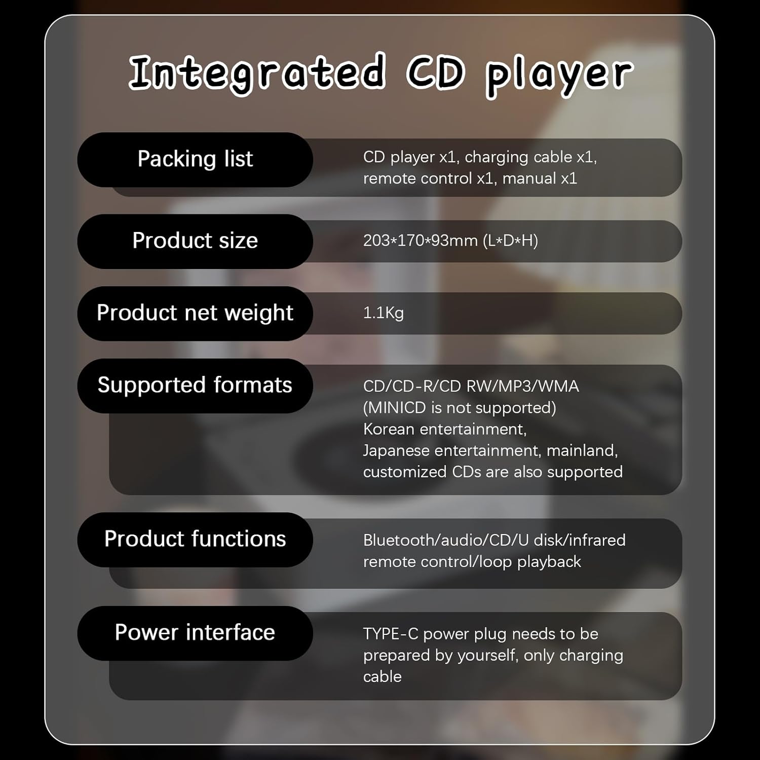 - Vintage CD Player Paket Enthält: CD Player x 1, Fernbedienung x 1, Typ C Netzteil x 1, Handbuch x 1. Dieser Bluetooth CD Player im Vintage Stil ist ein perfektes Geschenk für jedermann.