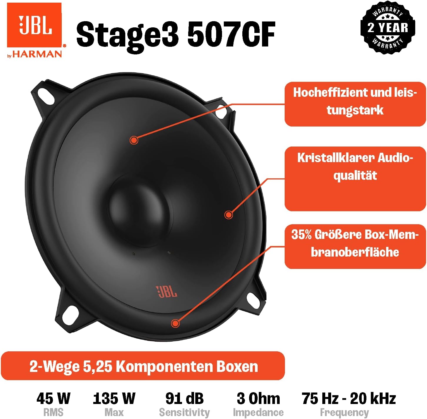 - JBL Stage3 607CF Autoboxen haben dank ausgewogenen Edge-Driven Dome Hochtöner, gleichmässige, weiche und kristallklare Hochtonwiedergabe, das heisst einfach geniessen vom sauberen Sound wie der Musikant es gemeint hat