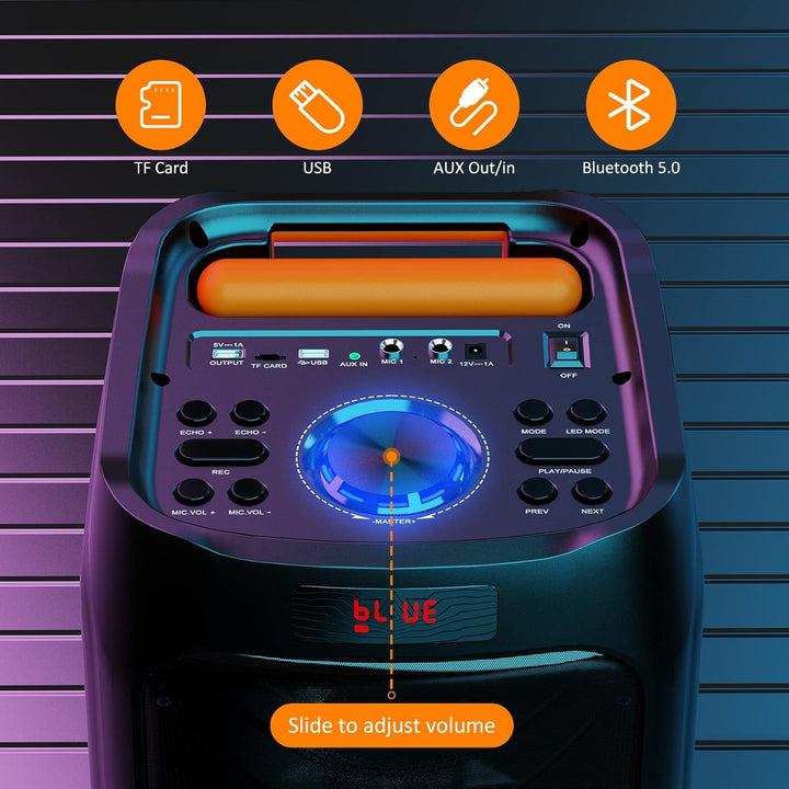 - 【IPX4 Spritzwassergeschützter Lautsprecher mit RGB-Lichtern】DJ-Lichter verwandeln jeden Raum in ein Rockkonzert, Nachtclub und Karaoke-Raum. IPX4 spritzwassergeschütztes Design, ob Sie sich mit Freunden auf der Terrasse treffen oder am Pool trinken, machen Sie sich keine Sorgen, dass Ihre Stereoanlage nass wird.