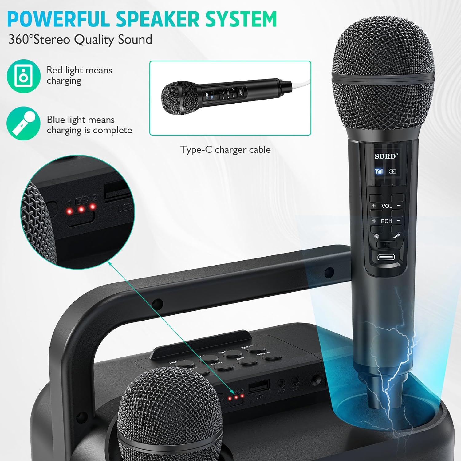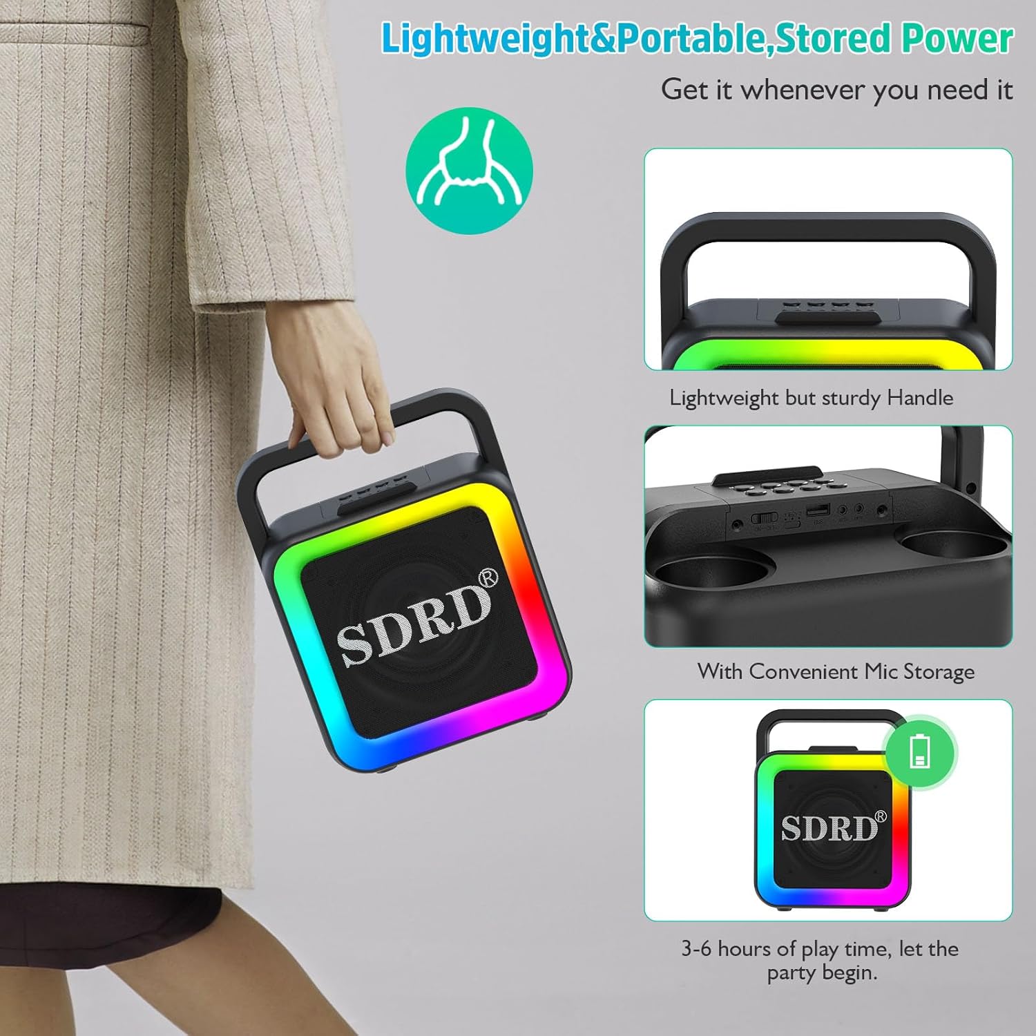 - Tragbares und leistungsstarkes PA-System: Die Karaoke-Maschine ist mit 10 W Premium-Breitbandlautsprechern, klaren Höhen, präzisen Mitten und tiefen Bässen ausgestattet, die satte, lebendige und lebensechte Klänge erleben. Spitzenleistung erreicht