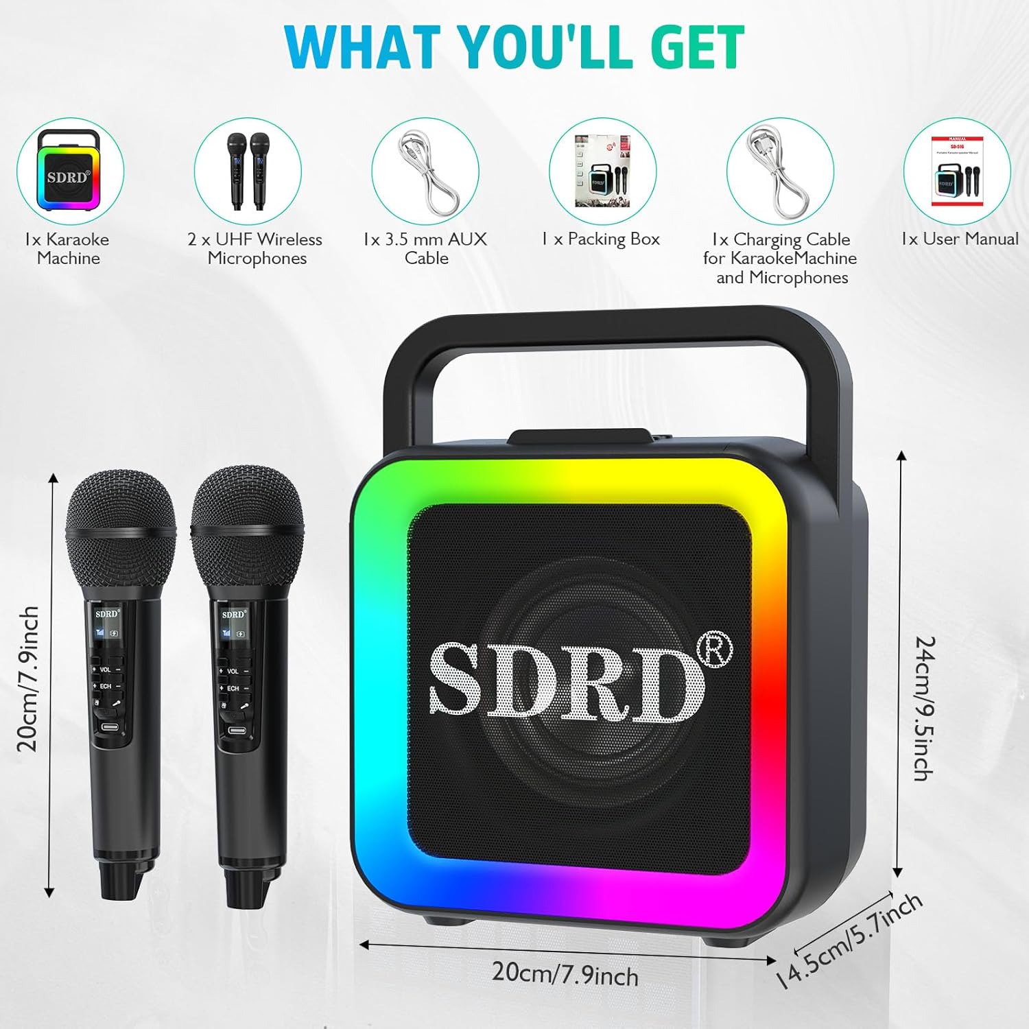 - Mehrere Konnektivität und Bluetooth 5.0: Karaoke-Maschinen einfache Konnektivität über Bluetooth 5.0/USB-Anschluss/MicroSD-Karte von vielen externen Geräten wie iPhones, Android-Handys, iPad, TV, PC usw. Über AUX-Kabel oder Cinch-Kabel und OUT-Port