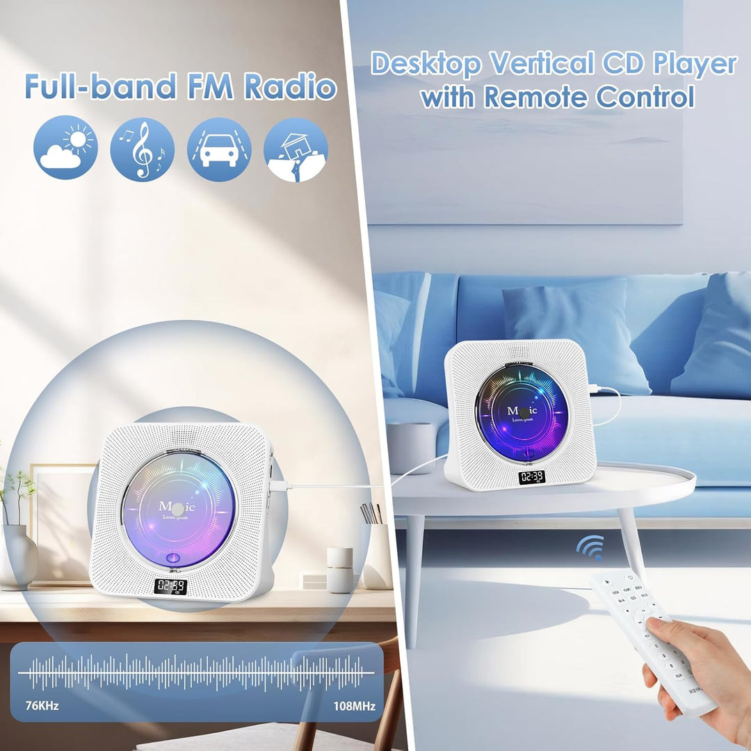 - Dual-Lautsprecher mit Hi-Fi-Sound: Der CD-Player für zu Hause verfügt über integrierte Dual-Stereo-Lautsprecher, über die Sie Ihre Musik mit Freunden teilen können. Ausserdem bietet ein Kopfhöreranschluss mehr Privatsphäre, damit Sie Ihre