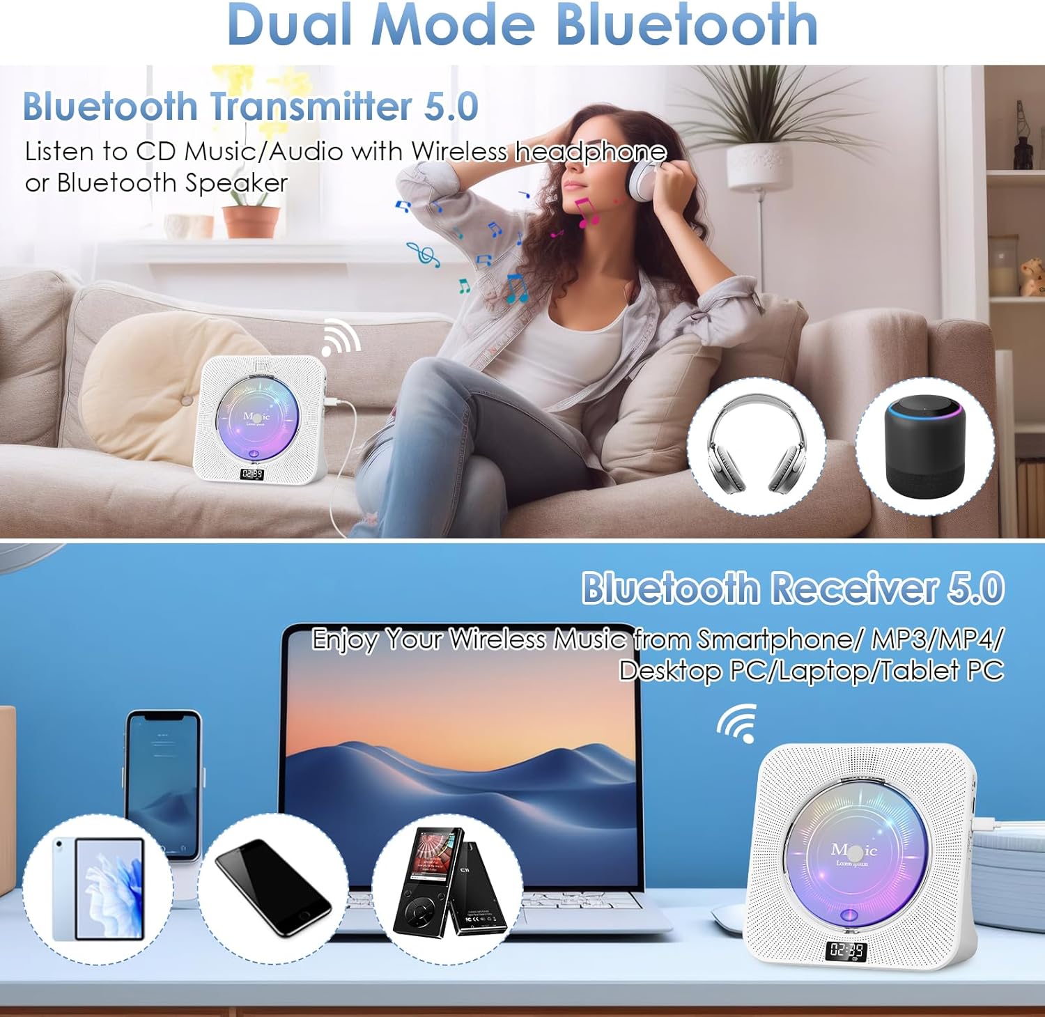 - CD-Player mit Bluetooth 5.0: Dieser CD-Player Bluetooth ist Dual-Bluetooth eingebaut, die neueste Bluetooth 5.0-Technologie bietet einen grösseren Signalbereich, schnellere Verbindung und Übertragungsgeschwindigkeit. Sie können nicht nur drahtlose