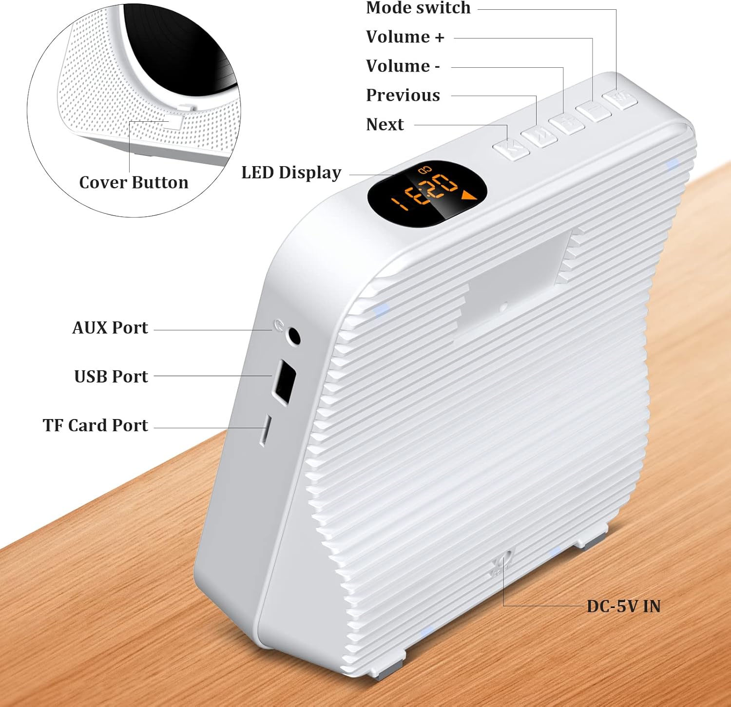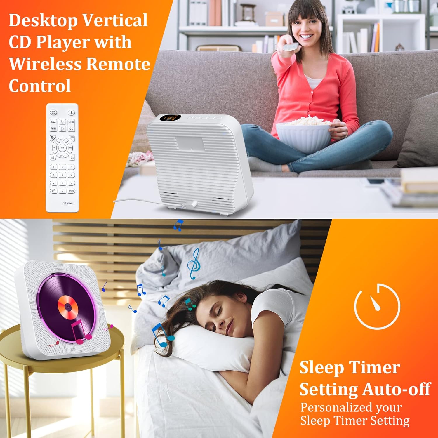 - Dual 5W Lautsprecher: CD Player hat eingebaute 5W Dual Stereo Lautsprecher, Sie können Musik mit Freunden über interne Lautsprecher teilen. Ausserdem bietet die 3,5-mm-Kopfhörerbuchse mehr privaten Raum, um Ihre Lieblingsmusik mit Kopfhörern zu