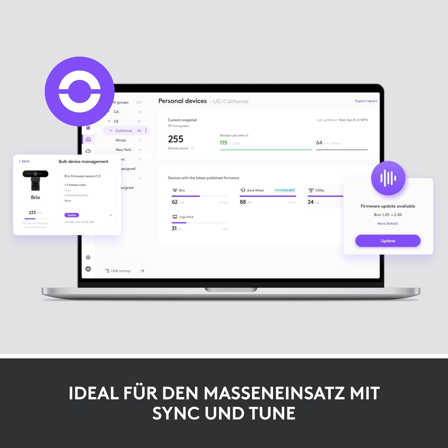 - Virtuelle Meetings: Logi Dock ist für Google Meet, Google Voice, Zoom und Tencent Meeting zertifiziert und gleichzeitig mit gängigen Anrufanwendungen auf den meisten Plattformen und Betriebssystemen kompatibel
