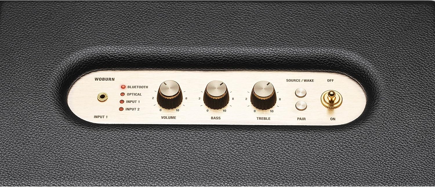 - Mit den analogen Reglerknöpfen des Woburn können Sie eine Feinabstimmung von Bässen, Mitten und Lautstärke vornehmen, damit das Klangerlebnis stets Ihren Wünschen entspricht