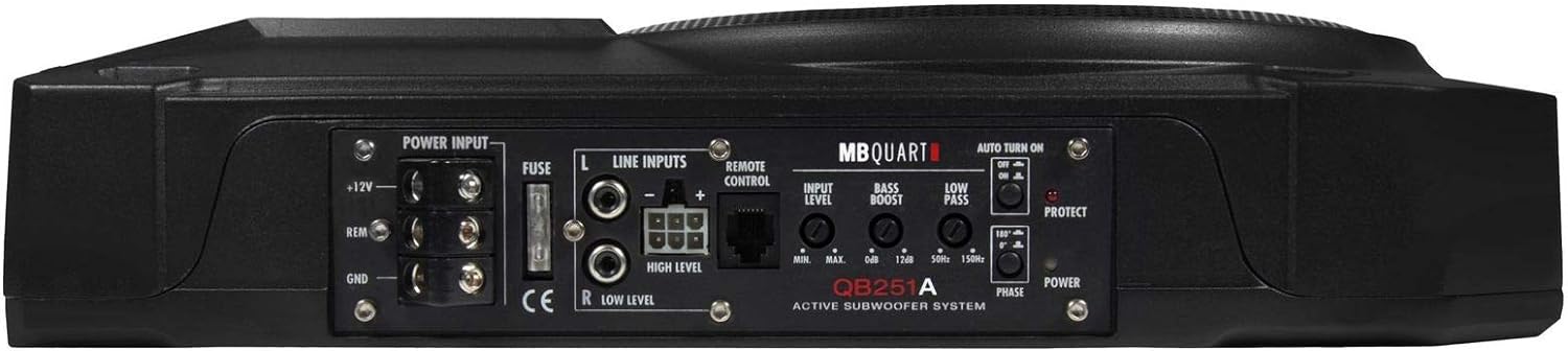 - Grösse: 25 cm in Aluguss-Gehäuse; Ausgangsleistung: 150 W RMS, 300 Watt MAX; Tiefpassfilter: 50-150 Hz; Bass Boost: 0-12 dB; Phasendrehung: 0°/180°; Aluminium-Kühlkörper-Gehäuse; Automatische Einschaltfunktion (Auto-Turn-On Funktion);