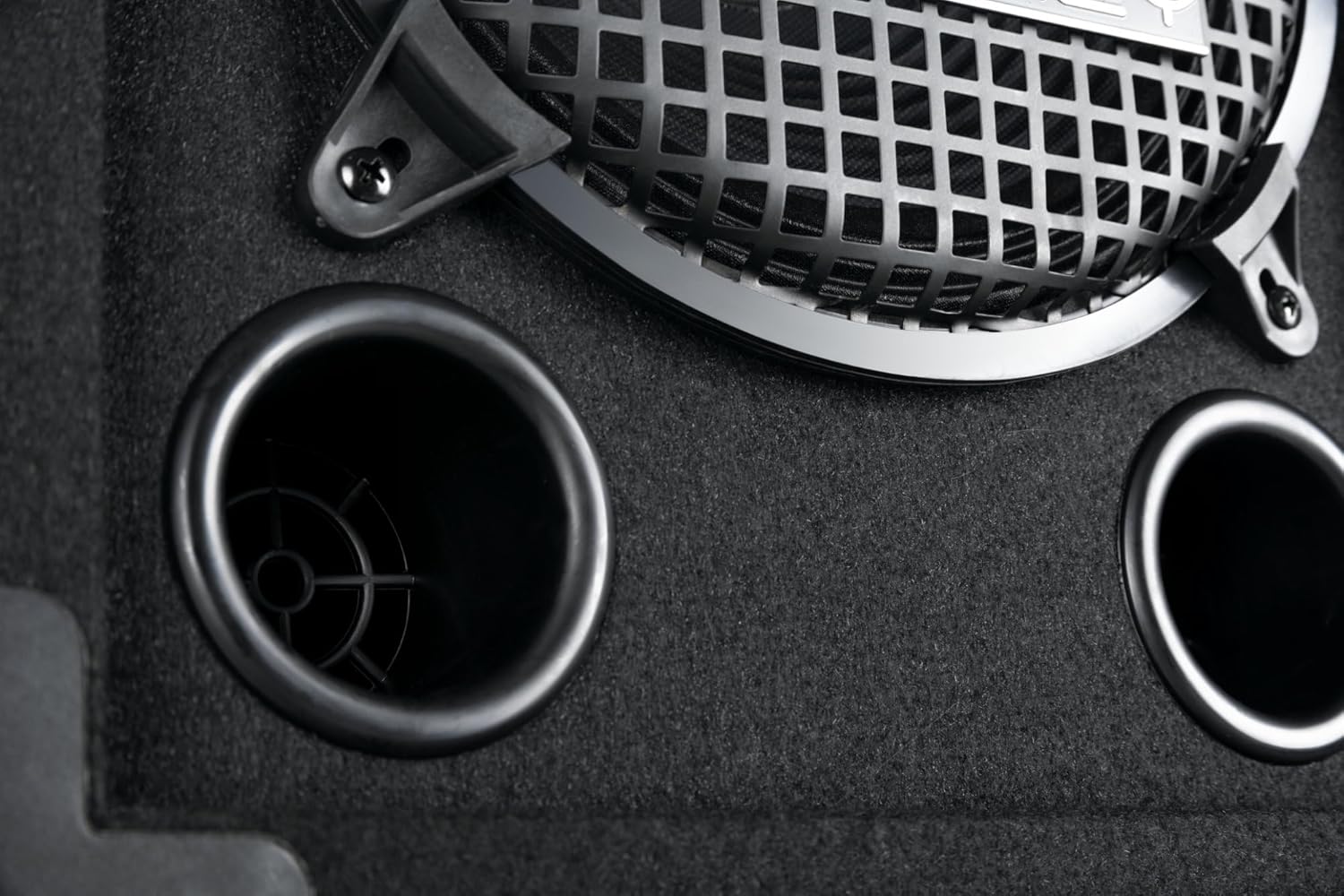 - Robustes Gehäuse mit Schutzecken, Filzoberfläche und Metallgitter, Stabiles Holzgehäuse und Tragegriffe, 35 mm Boxenflansch