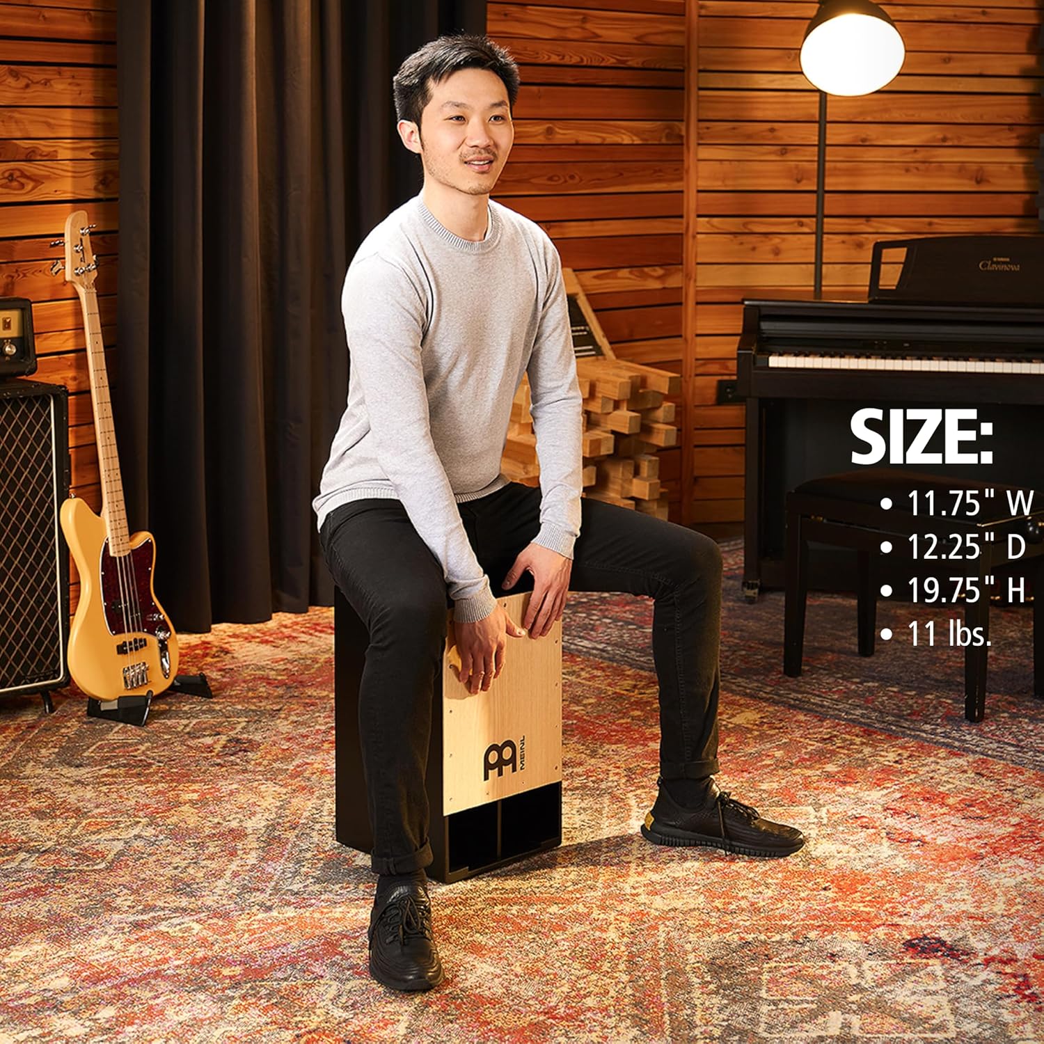 - Kompakte Sitztrommel, Trommelbox — Das Cajon wird mit den Händen, mit Brushes oder mit Pedalen gespielt