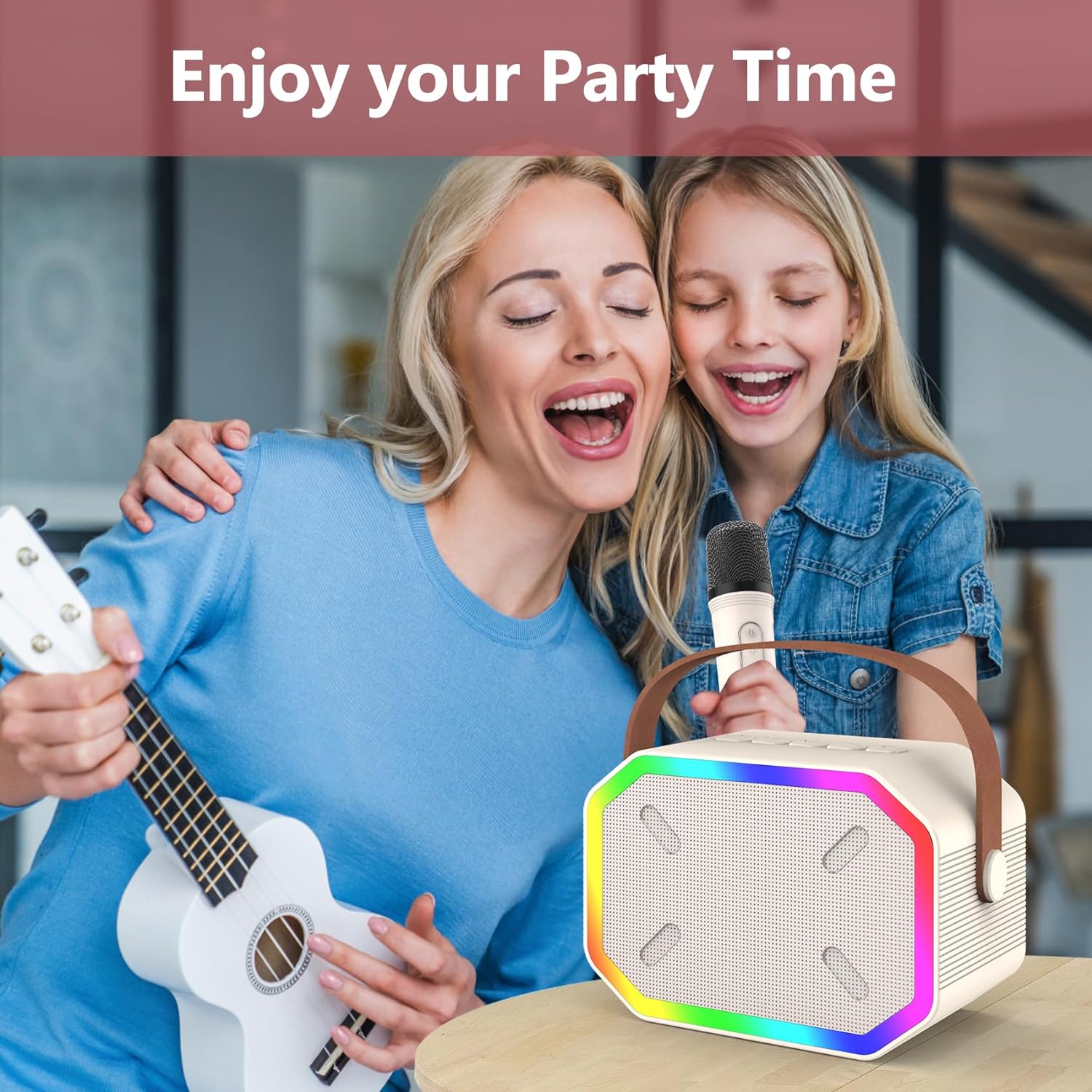 - Leistungsstarke Karaoke-Maschinen-Sets: Die tragbare Karaoke-Maschine für Kinder und Erwachsene mit leichter Mini-Grösse, kann von Kindern leicht angehoben werden, um sie überallhin mitzunehmen. Der Bluetooth-Lautsprecher ist mit einem