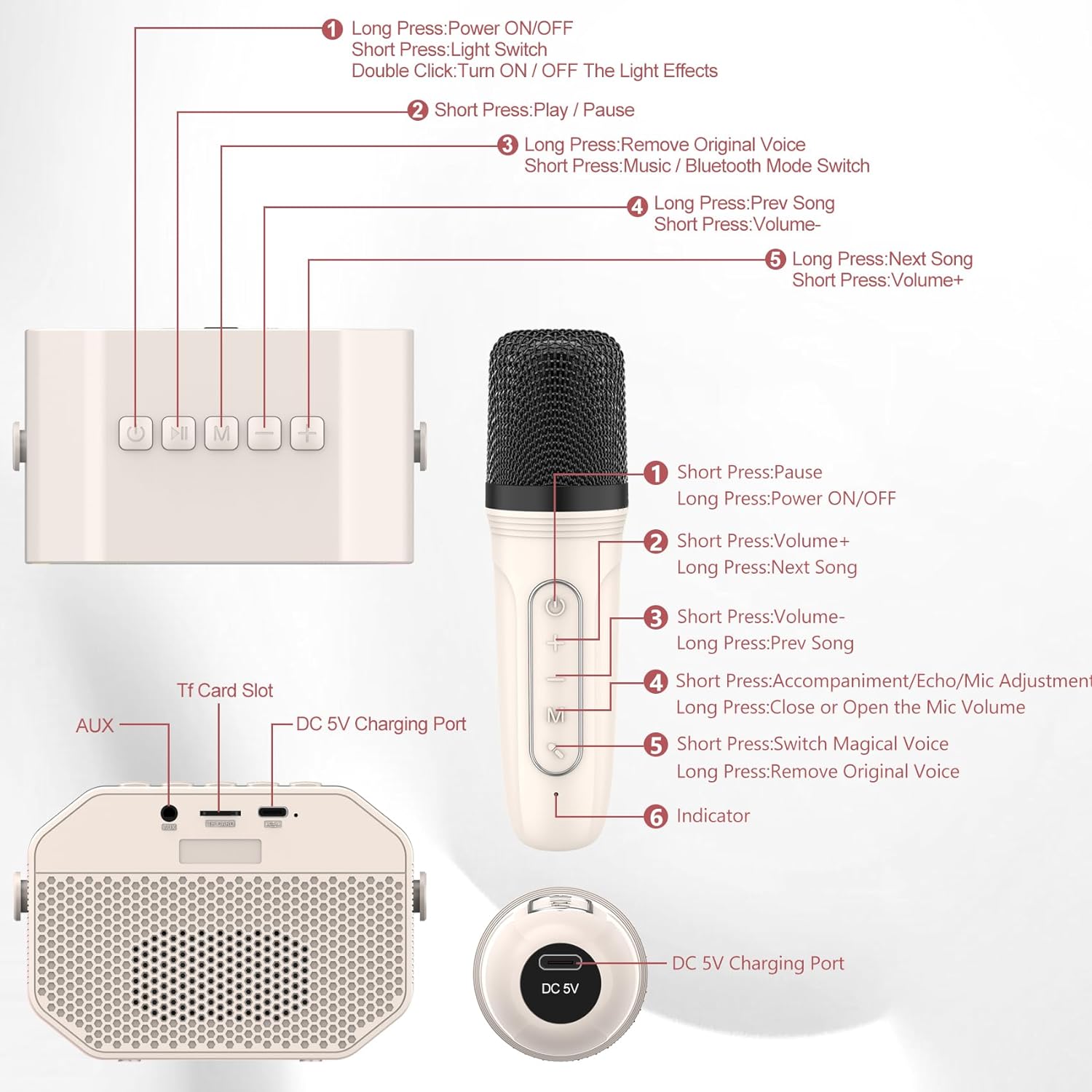 - LED-Lichtmodi für Partys: Die Kinder-Karaoke-Maschine für Mädchen ist mit farbenfrohen Disco-Lichtern ausgestattet, die über einen unabhängigen Knopf zum Ein- und Ausschalten verfügen. Die integrierten 6 Lichtmodi sorgen für ein immersives und