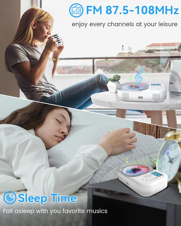 - [ Anti-Skip und hintergrundbeleuchtetes Display ] Die verbesserte Anti-Skip-Funktion stellt sicher, dass die tragbarer CD Player auch bei Erschütterungen, Stössen oder beim Fahren auf holprigen Strassen nicht aufhört zu spielen. Das