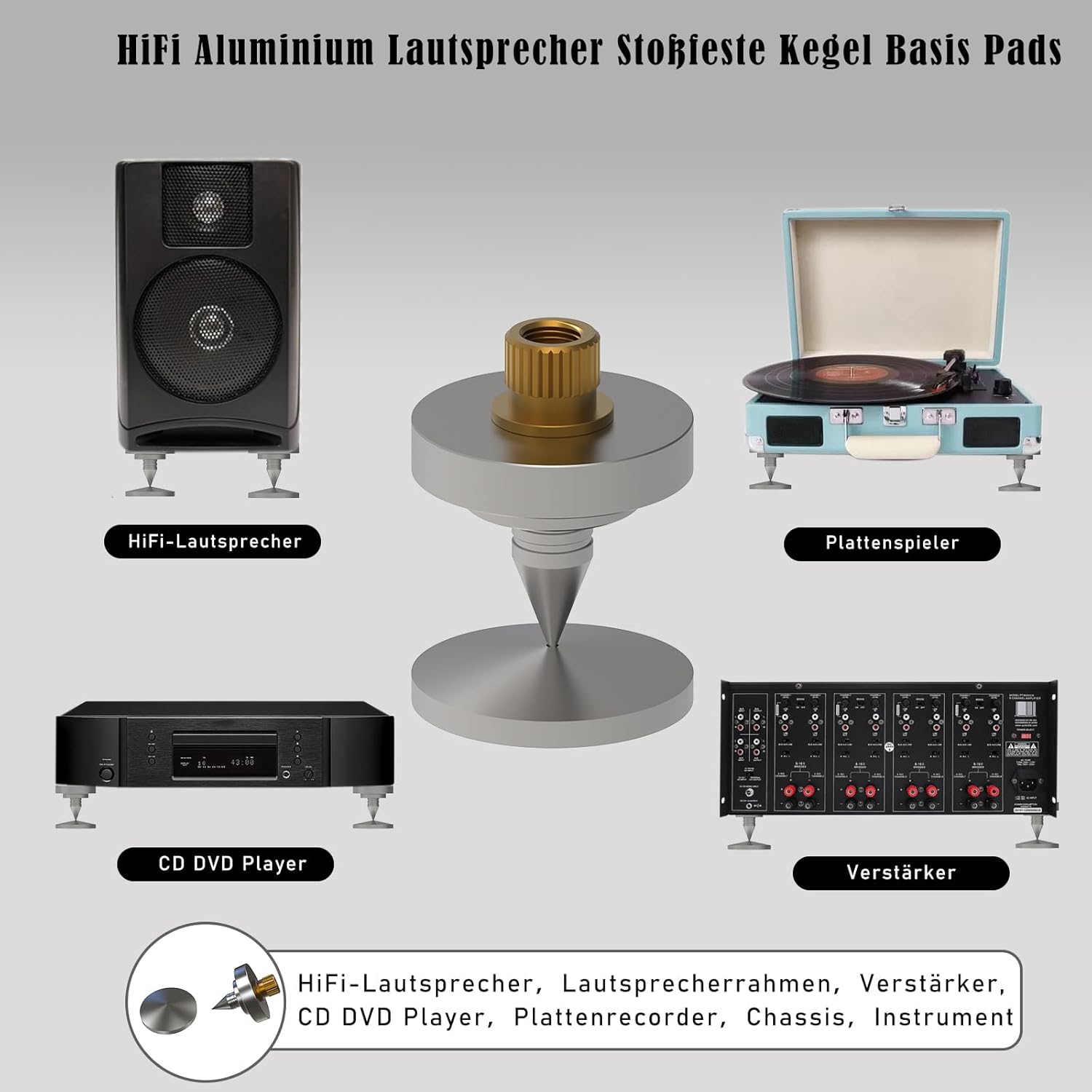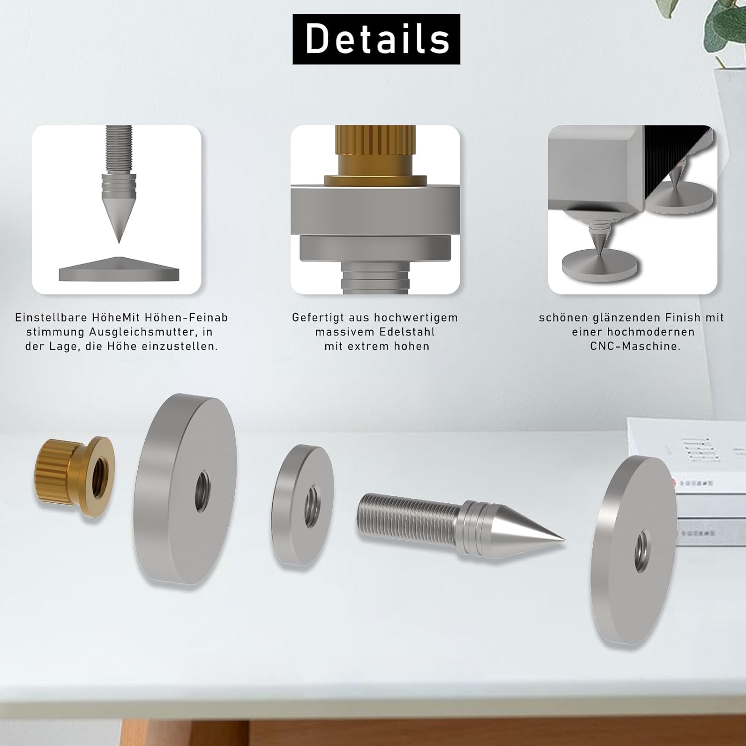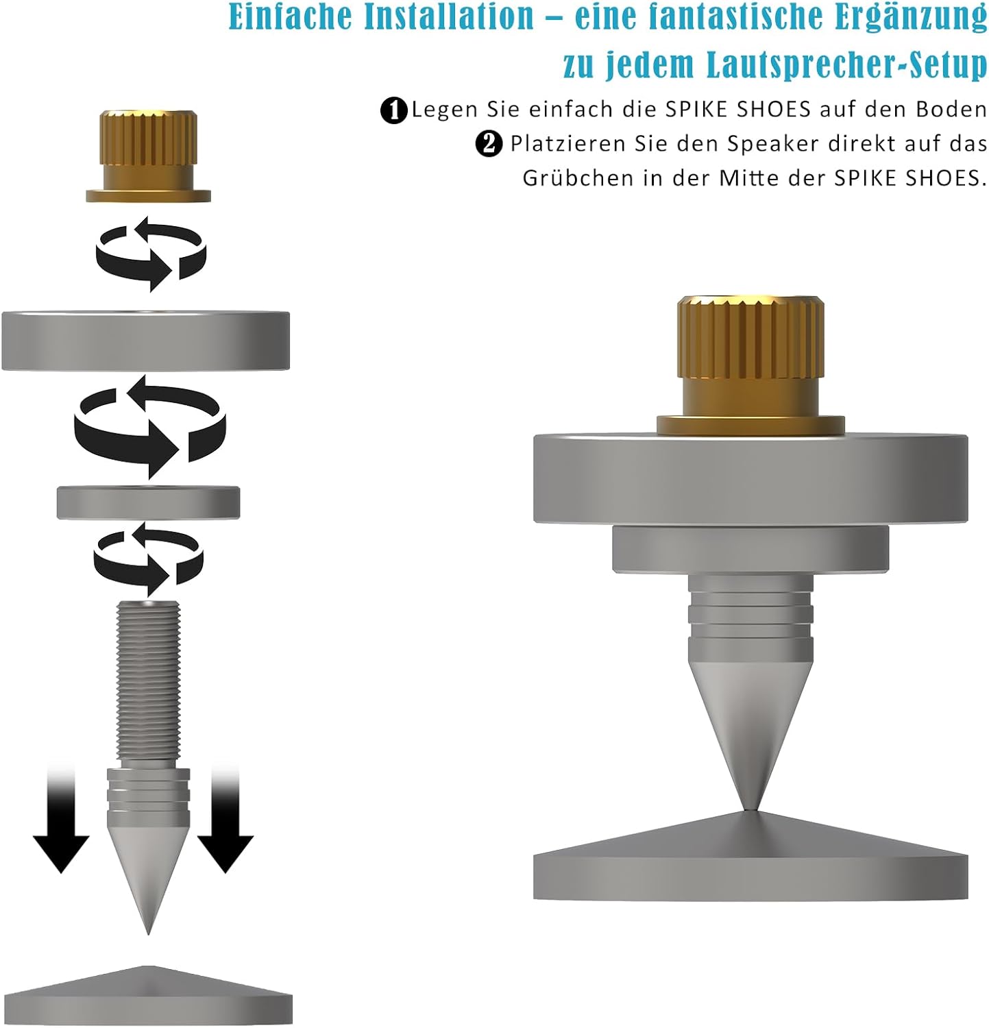 - Die Lautsprecherspitzen sind Akustische Optimierung durch An- oder Entkopplung | Ideal für eine präzise und verzerrungsfreie Tieftonwiedergabe | Schwingungsenergie und Resonanzen werden effizient reduziert