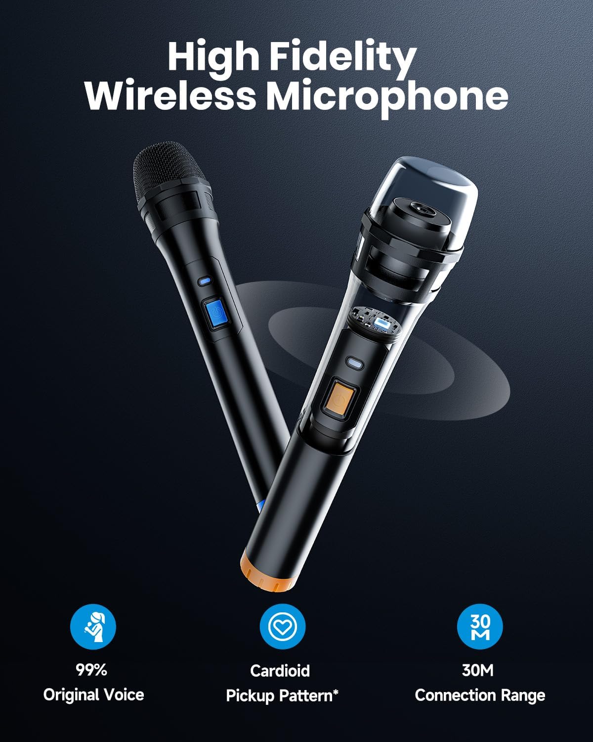 - đ€ăIdeal fĂŒr ZusammenkĂŒnfteăAusgestattet mit zwei Mikrofonen, die jeweils zwei AA-Batterien (nicht im Lieferumfang enthalten) benötigen, können die Mikrofonhalter auf beiden Seiten ungenutzte Mikrofone platzieren, sodass Sie sich keine Sorgen