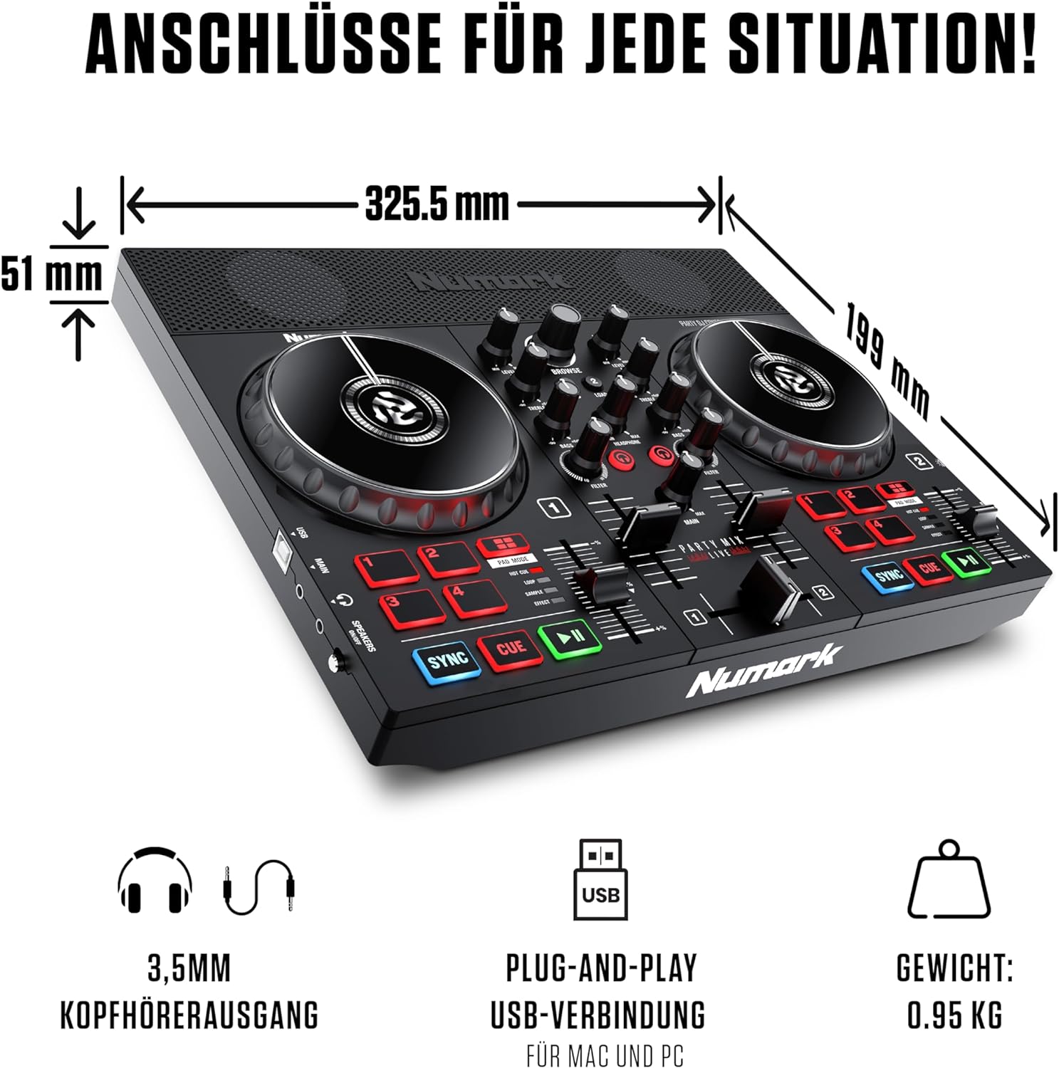 - DJ-Ausrüstung für Einsteiger - 2 DJ-Kontrolldecks mit berührungsempfindlichen Jogwheels, eingebauten Lautsprechern, Audio Interface und USB-Verbindung für Mac, PC, iOS