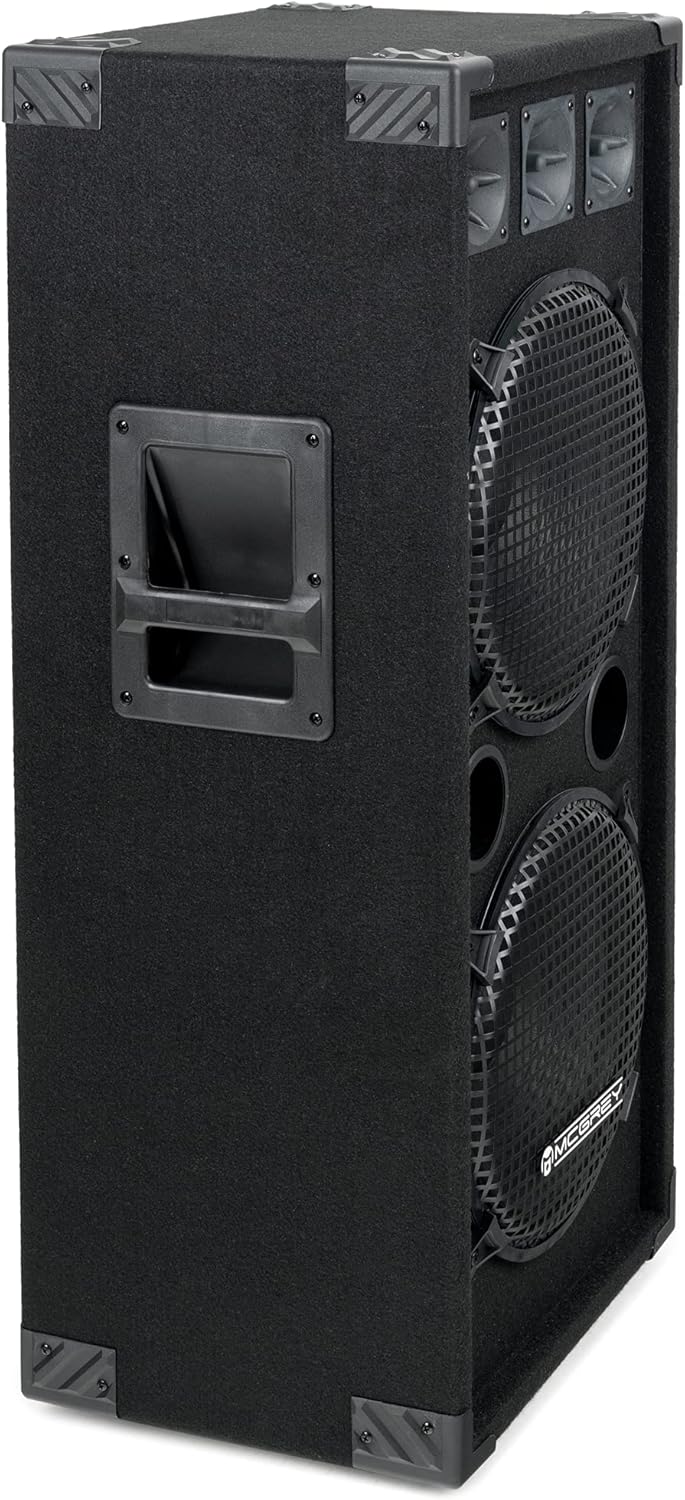 - 2-Wege-Box mit 2 x 12“ (30cm) Subwoofer und drei Piezo-Hochtönern, 500W RMS (1000W MAX)