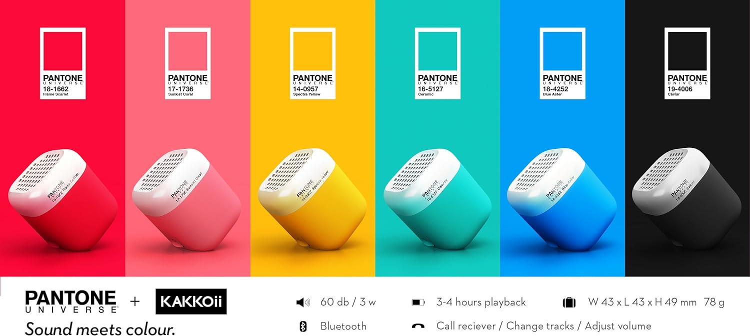 - Lieferumfang: KAKKOii Pantone Bluetooth Micro Lautsprecher, USB Kabel (USB an Mini USB), Audiokabel