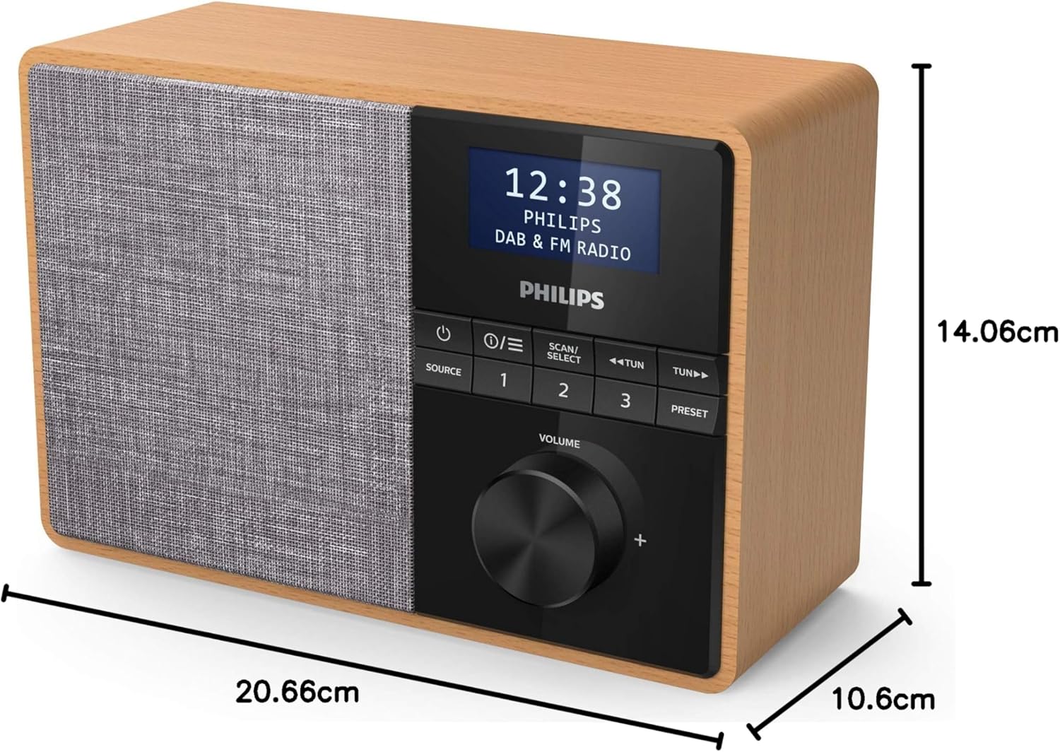 - Lieferumfang: Philips Radio R550510 mit Bluetooth, DAB, Holzgehäuse, 3"-Breitband-Lautsprechertreiber, Küchentimer; AC-DC-Adapter, Kurzanleitung