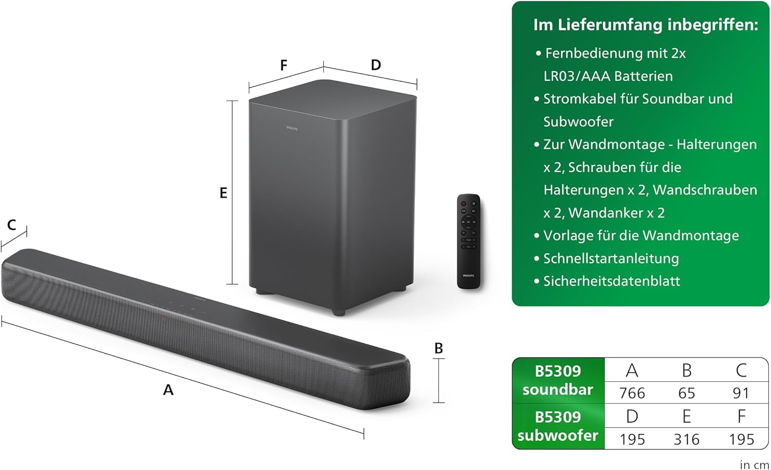 - IHR TV KLINGT NOCH BESSER: Besserer Klang mit 2.1 Kanälen mit Subwoofer und immersiver Audio-Technologie. Kompakter drahtloser Subwoofer für sattere Effekte und Musik. Personalisierter Klang mit 4 EQ-Modi. Klare Stimmen mit Dialogue Enhancement.