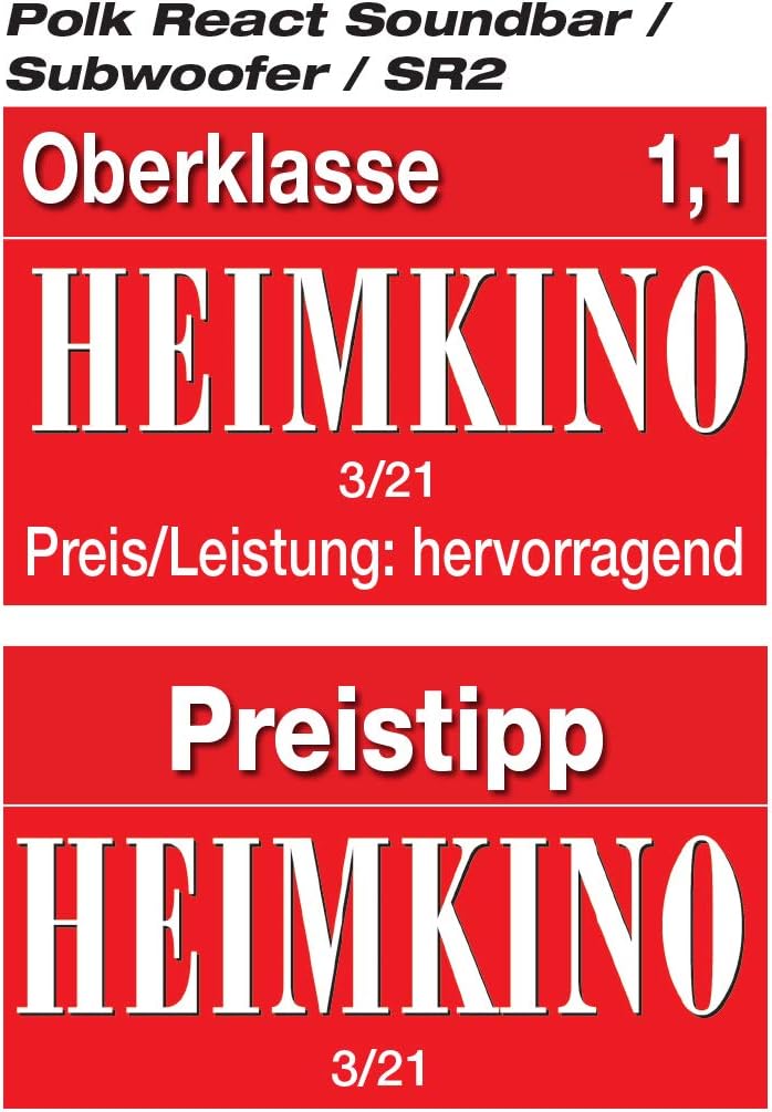 - 5.1 HEIMKINOSYSTEM MIT POLK REACT- Fügen Sie die Wireless Surround Speaker Polk SR2 zu der Polk React TV Soundbar mit Alexa Built-in hinzu, mit einem zusätzlichen Polk React Sub erhalten Sie ein kabelloses 5.1 Heimkino Soundsystem