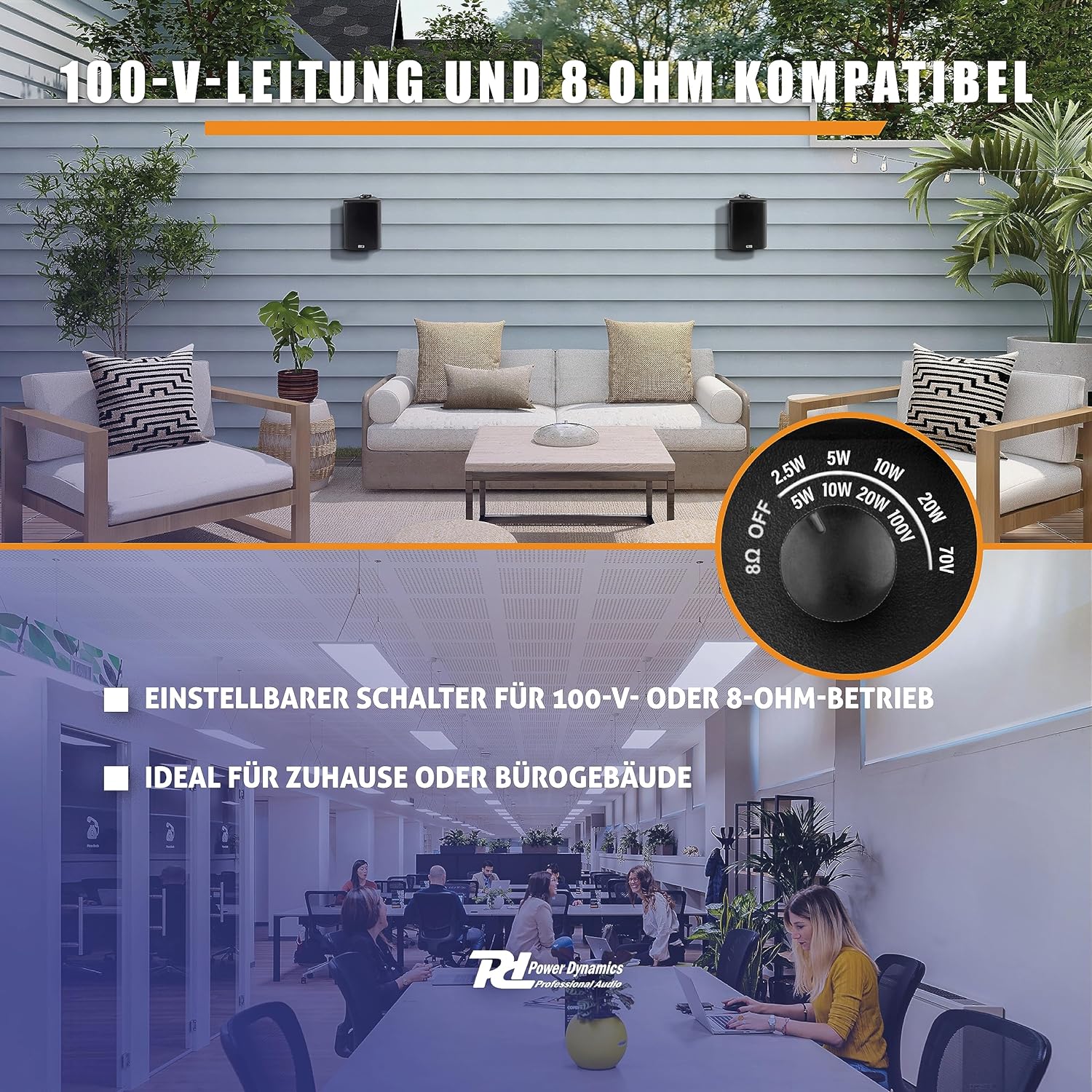 - Das Power Dynamics BC40V Lautsprecher-Set ist dank IP65 Zertifizierung für den Innen- und Aussenbereich geeignet.