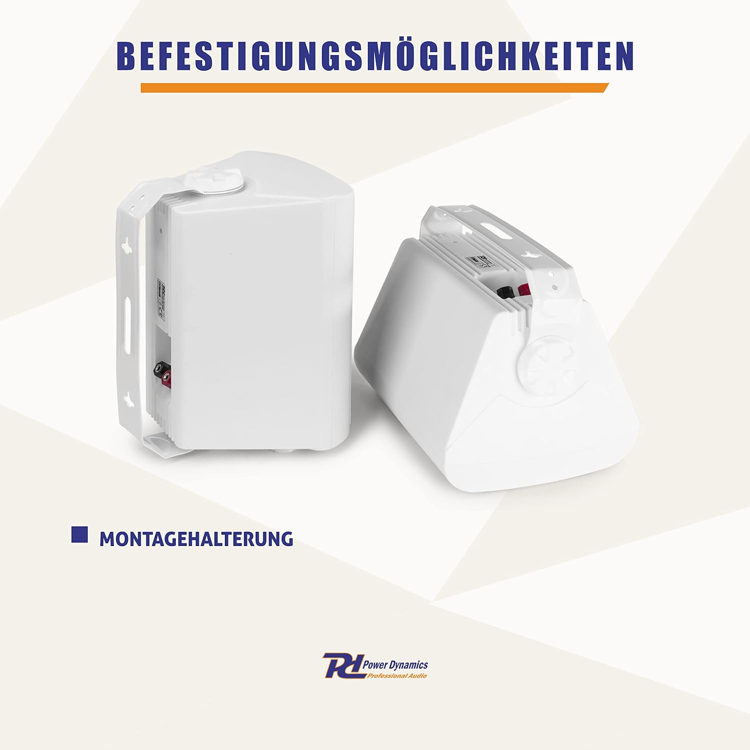 - Wand und Decke: Die Lautsprecher werden mit passenden Halterungen geliefert, die eine einfache Montage an der Wand oder Decke ermöglichen.
