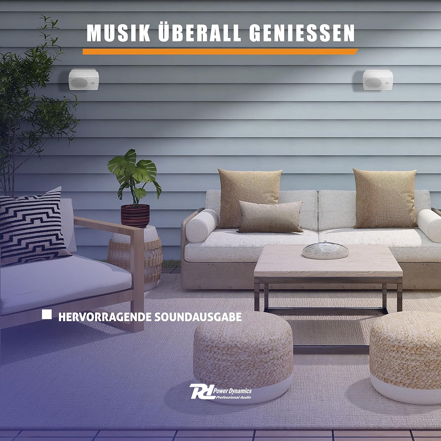 - Die Lautsprecher sind perfekt für den Innen- und auch für den Aussenbereich geeignet. Optimal für die Beschallung von Gaststätten, Terassen, Gebäuden uvm.